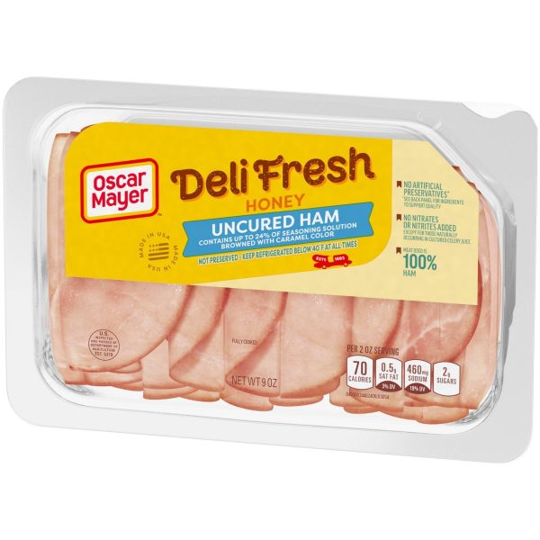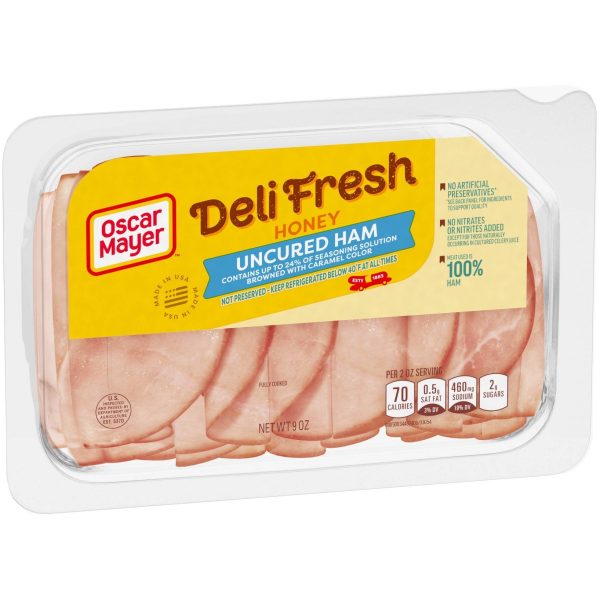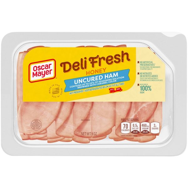 u0026bull;One 9 oz. tray of Oscar Mayer Deli Fresh Honey Uncured Ham, Contains Up To 24% Of Seasoning Solution, Browned With Caramel Color, Sliced Lunch Meat No Nitrates or Nitrites Added Except Those Naturally Occurring in Cultured Celery Juiceu003cbru003eu0026bull;Oscar Mayer Deli Fresh Honey Uncured Ham, Contains Up To 24% Of Seasoning Solution, Browned With Caramel Color, Sliced Lunch Meat No Nitrates or Nitrites Added Except Those Naturally Occurring in Cultured Celery Juice is made with 100% Hamu003cbru003eu0026bull;Sliced Uncured honey ham, Contains Up To 24% Of Seasoning Solution, Browned With Caramel Color, No Nitrates or Nitrites Added Except Those Naturally Occurring in Cultured Celery Juice is 97% fat-freeu003cbru003eu0026bull;Uncured ham, Contains Up To 24% Of Seasoning Solution, Browned With Caramel Color, lunch meat has no artificial preservatives* and no added nitrates or nitrites Except Those Naturally Occurring in Cultured Celery Juice. *See Back Panel For Ingredients To Support Qualityu003cbru003eu0026bull;Our sliced ham is sweetened with a touch of honeyu003cbru003eu0026bull;Honey ham slices are fully cooked and ready to eatu003cbru003eu0026bull;Add a few slices of honey ham lunch meat to sandwiches, wraps, deli platters, salads, or cheese and crackersu003cbru003eu0026bull;So many ways to keep it Oscar with our wide range of cold cuts, bacons, hot dogs and meat snack platesu003cbru003eu0026bull;SNAP u0026 EBT eligible food item