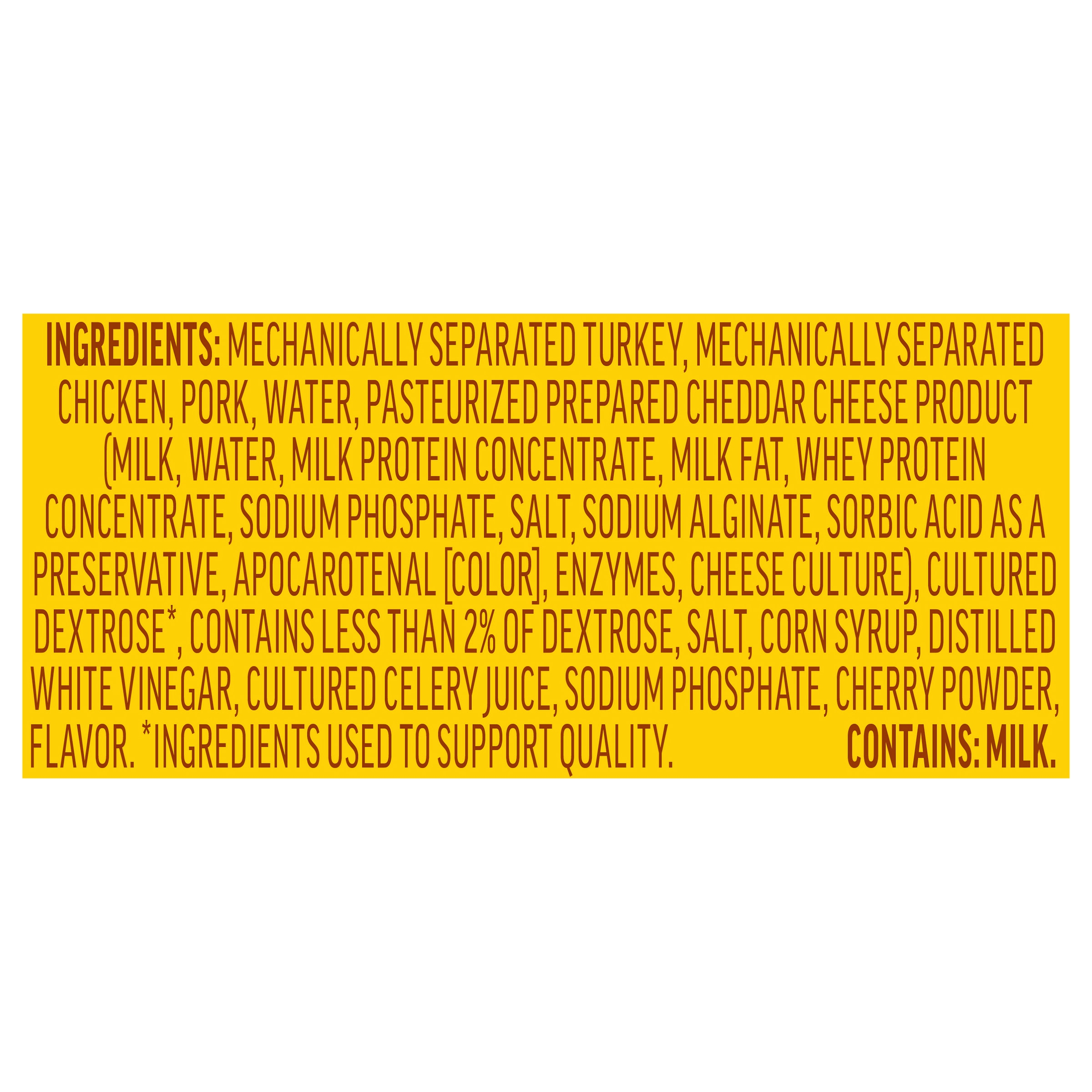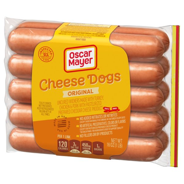 Oscar Mayer Uncured Cheese Dogs are made with the tasty wieners you love plus tons of cheesy goodness that is sure to please the whole family. Made with no artificial preservatives, except for pasteurized prepared cheese product, see back panel for ingredients used to preserve quality, and no added nitrates or nitrites, except for those naturally occurring in cultured celery juice, our uncured hot dogs are a camping dinner delight. Serve Oscar Mayer Uncured Cheese Dogs with ketchup or chili sauce for a spicy kick, Crisp these fully cooked cheese dogs on the grill for added smoky flavor. Each 10-pack comes vacuum sealed in a 16-ounce resealable pouch. Our Oscar Mayer wieners have cheese mixed in, making them a big hit at all your summer barbecues. Our cheese hot dogs are a great addition to Memorial Day or Fourth of July BBQs.