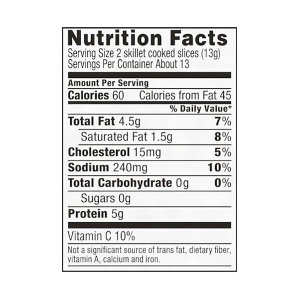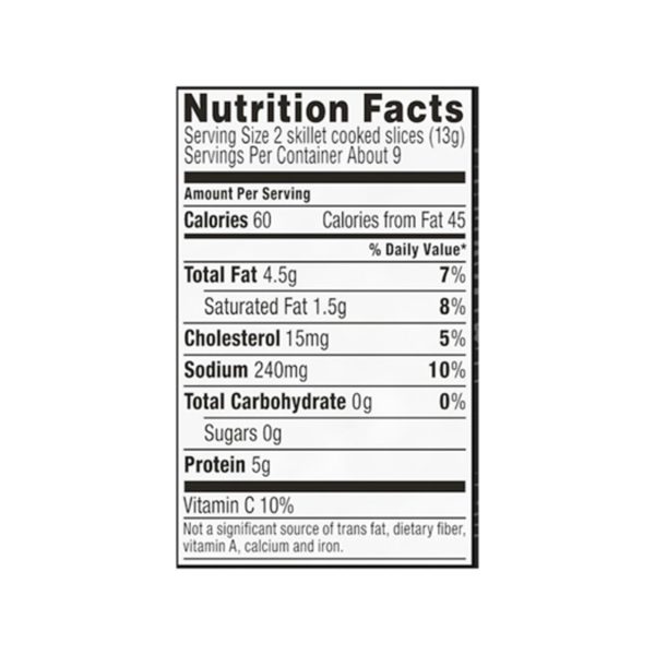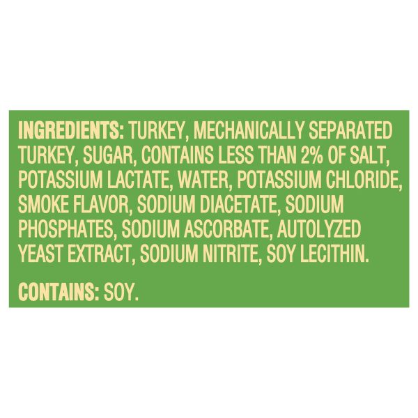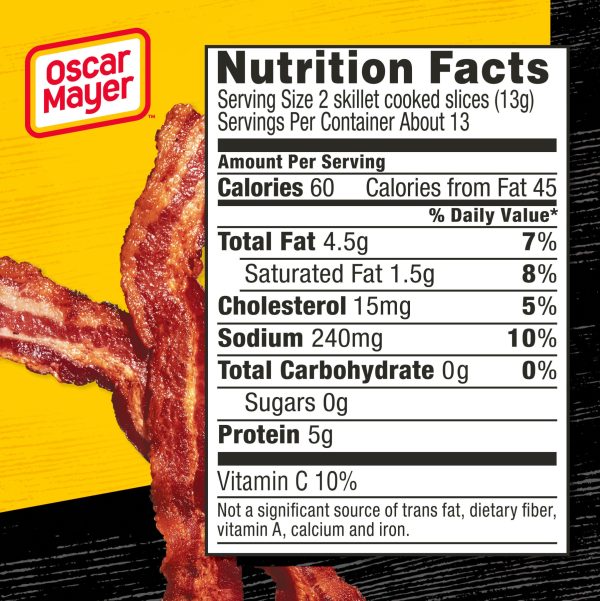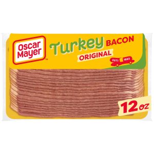 Oscar Mayer Turkey Bacon smoked cured turkey, chopped & formed, smoke flavor added, with 58% Less Fat & 57% Less Sodium, 12 oz.