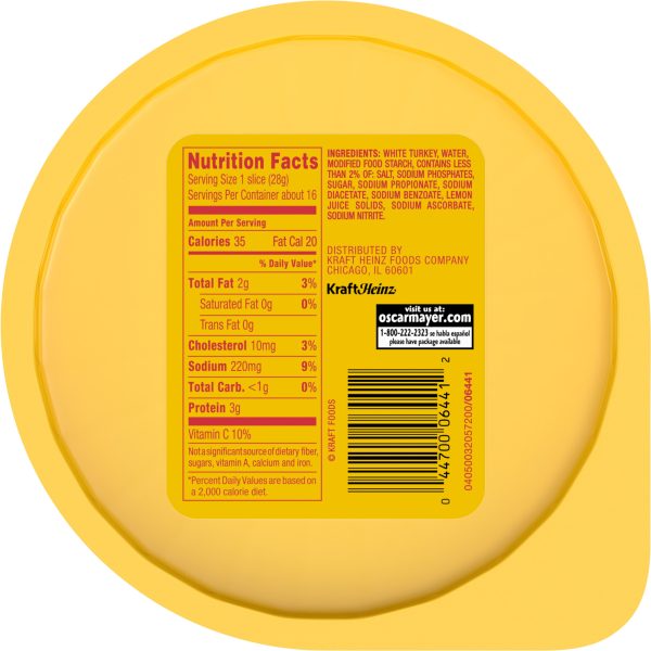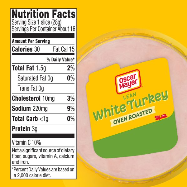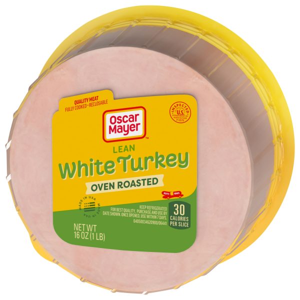 Oscar Mayer Oven Roasted White Turkey is quality sliced turkey breast lunch meat. With 30 calories per slice, Oven Roasted White Turkey makes for a delicious addition to your favorite breakfast or cold meat lunch sandwich. This Oscar Mayer Oven Roasted Turkey is fully cooked sliced turkey meat ready to eat, and has a delicious flavor that everybody can enjoy. Use Oven Roasted White Turkey, sliced to perfection to make a classic turkey and cheese sandwich as part of your lunch, an early-morning breakfast sandwich or even make a delicious turkey melt in the oven. These turkey cold cuts make a great addition to cheese and crackers as well as lunch meat trays with chicken breast and deli-sliced corn beef. Keep Oscar Mayer Oven Roasted White Turkey refrigerated in the recloseable 16 ounce pack to maintain freshness.