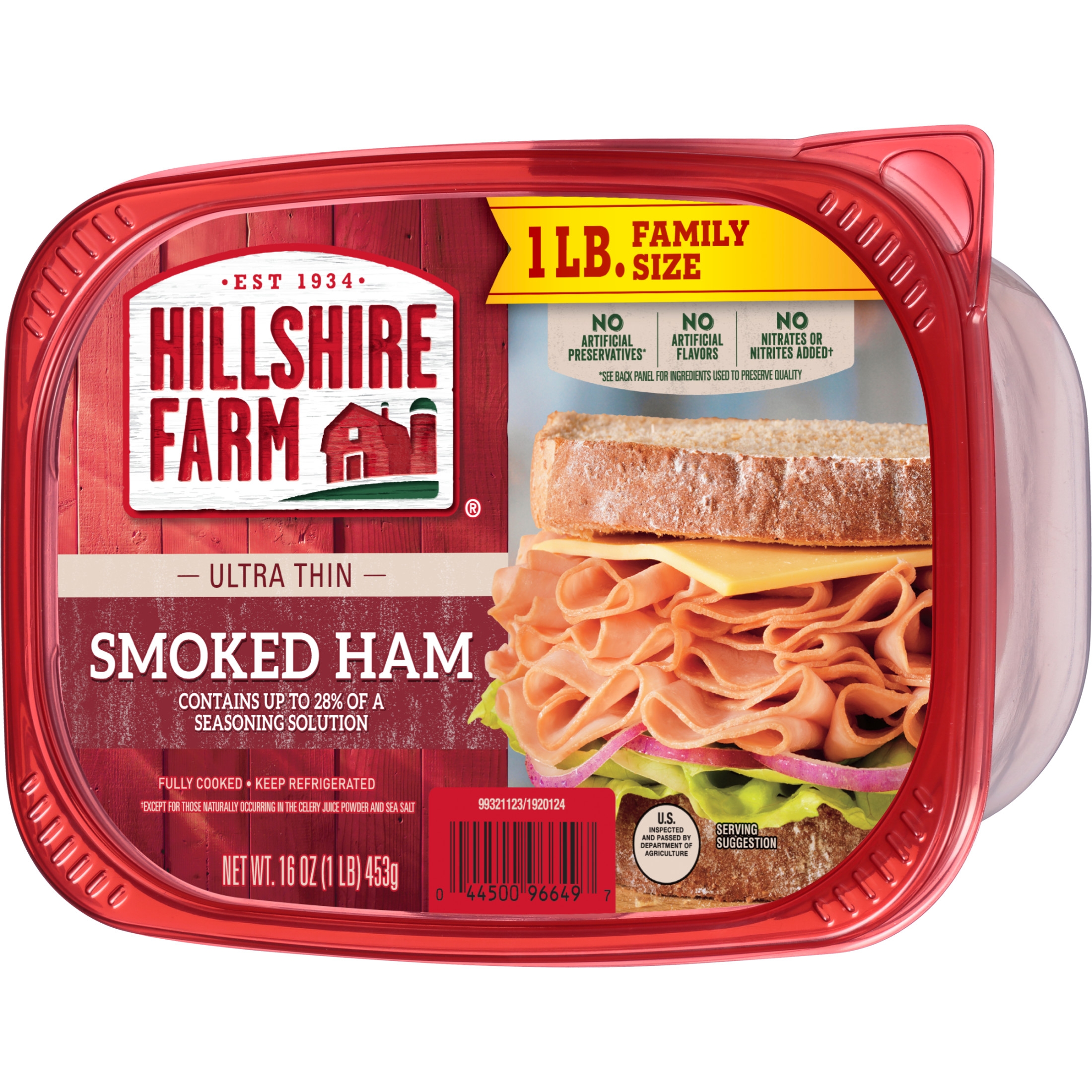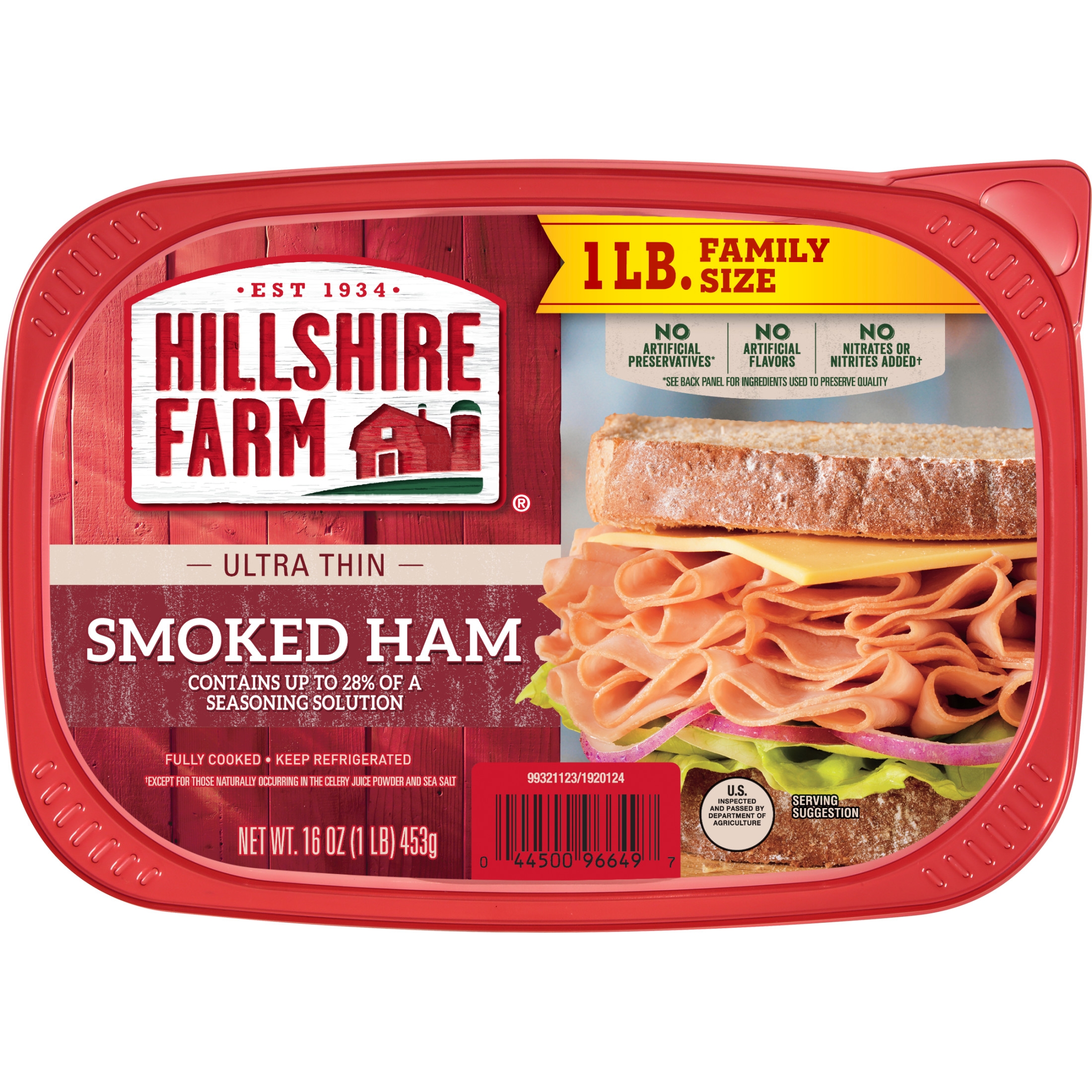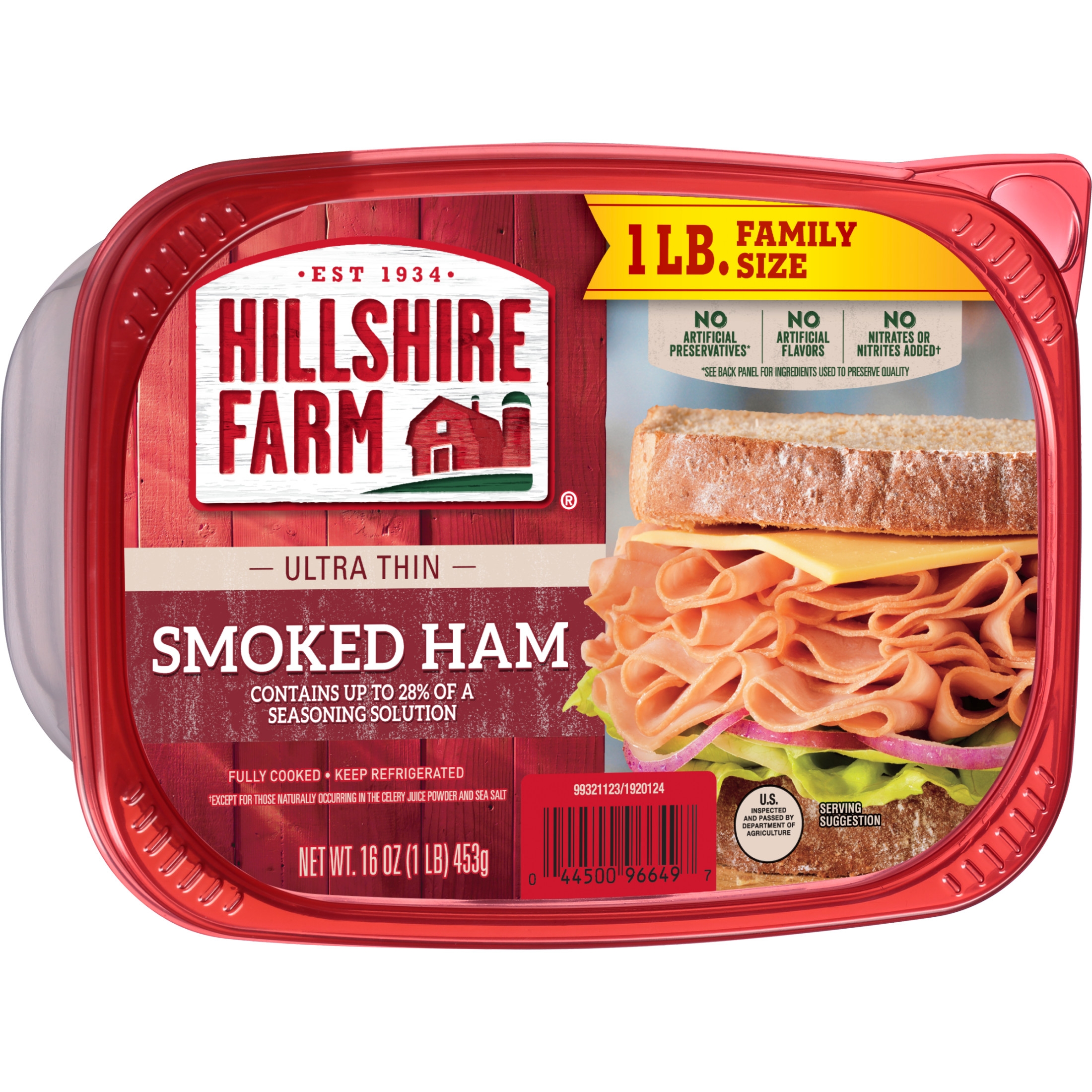 Enjoy premium sandwich ham at home with Hillshire Farm Sliced Smoked Ham Deli Lunch Meat. Made with perfectly seasoned, slow smoked ham and no artificial flavors, this smoked meat is juicy, flavorful and 97% fat free. Fully cooked and ready to eat, simply serve this cold cut ham with mild cheddar cheese, sliced red onion and spinach on whole wheat bread for a delicious deli style sandwich. Perfect for when you want to add sliced meat and cold cuts to a lunch meat platter. Includes one 16 oz double sealed package of smoked meats for absolute freshness. Look for all of your favorite sandwich meat varieties wherever lunchmeat is sold. At Hillshire Farm, we know that quality is always the most important ingredient, and we believe that anything worth doing is worth doing right. We slow roast our cuts of meats for hours, so they are mouthwatering and tender, and we season them until they taste just right. You can be sure you’ll always taste our passion for farmhouse quality in all of our meat selections.