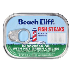 Beach Cliff Fish Steaks in Soybean Oil with Hot Green Chilies are hot and tasty bite-sized fish steaks packed in soybean oil with hot green chilies. These fish steaks are delicious on crackers or straight from the can, and are great with your favorite spreads, salads or pastas. These premium, high-quality bite size canned herring are convenient seafood snacks and are perfect in seafood recipes. It’s our Beach Cliff belief that everyone should enjoy the traditional flavors of protein-rich seafood at a price you can afford. As a global seafood company, we recognize our responsibility to the health of our oceans and all who rely on it. That’s why we’re champions for sustainable fishing and dedicated advocates for fishers.
