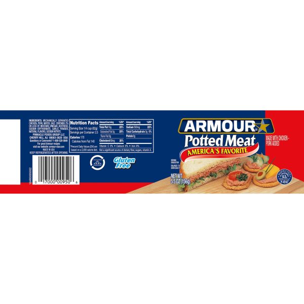 Armour Star Potted Meat offers an easy food that’s big on flavor. The gluten free meat is made with chicken and pork. Spread this canned chicken and pork on crackers, add the meat in a can to sandwiches for a delicious lunch, or incorporate the canned meat into your recipes for an easy meal the whole family will love. Enjoy pork and chicken potted meat on the go, make it a staple in your emergency kit, or keep the canned food in your pantry for a convenient meal or snack anytime. Make any time Armour Star time.