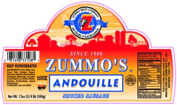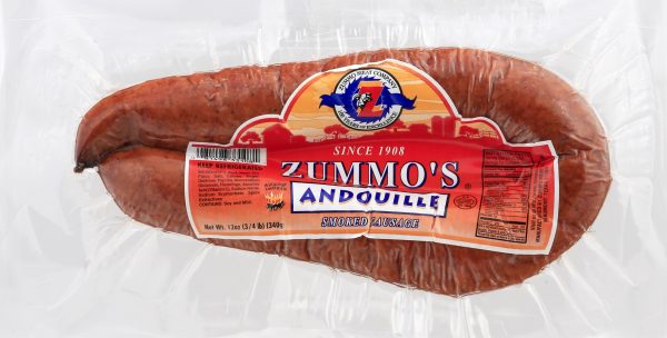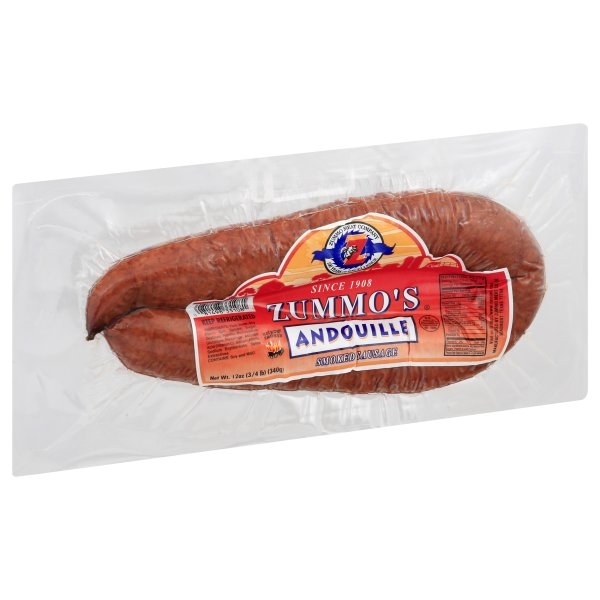 Truly A Cajun style treat! Zummo’s Andouille was specifically designed for cooking purposes. Andouille is even more highly seasoned and a courser ground sausage. These qualities make it ideal for adding to red beans and rice, gumbo, jambalaya, or any other dish that calls for sausage. 12oz. (3/4lb) (340g)