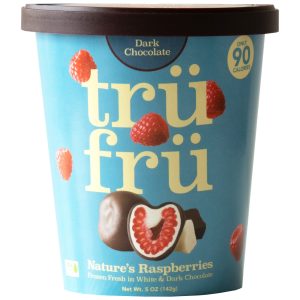 There is a berry special space in your heart that has been waiting to be filled with Tru Fru Dark Chocolate Raspberries. Enjoy the healthy, heavenly goodness of Tru Fru’ s Nature’s Raspberries. Our raspberries are frozen fresh to lock in all the nutrients and flavors present at peak ripeness. Our berries are then immersed in delicious and sustainable dark chocolate, making indulgence natural. That is why it is always been so tricky to get those four servings of fruit in every day that space has been reserved for Tru Fru.