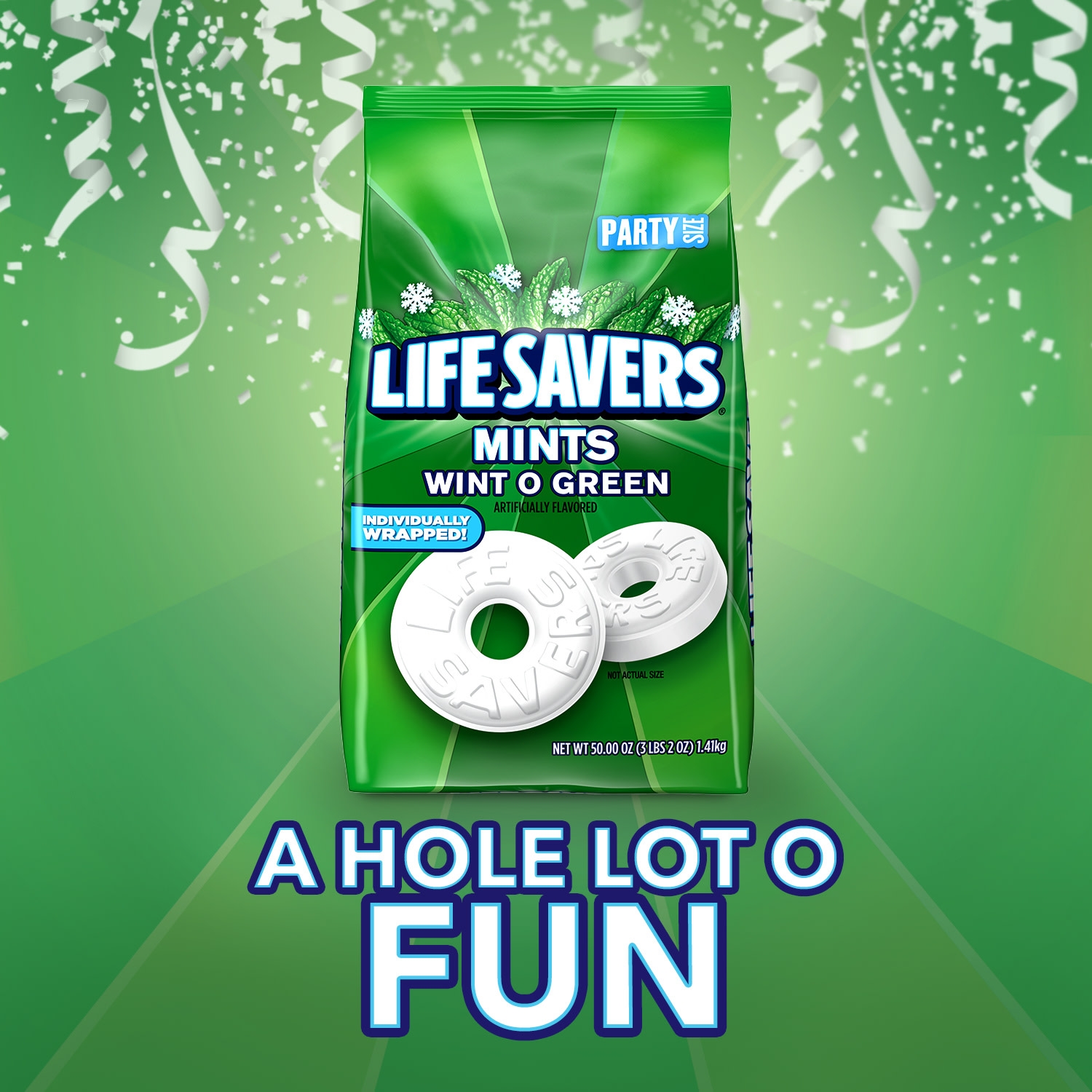 Enjoy your favorite classic minty treat with LIFE SAVERS Mints Wint O Green Hard Candy. This iconic minty candy is a refreshing way to build confidence before that big presentation or first date. Each individually wrapped mint is packed with satisfying wintergreen flavor to help keep you feeling fresh. Each bulk candy bag contains enough mints to share in a candy dish at home or at the office. Guests will love to find their favorite mint. LIFE SAVERS Mints are A Hole Lot O Fun!