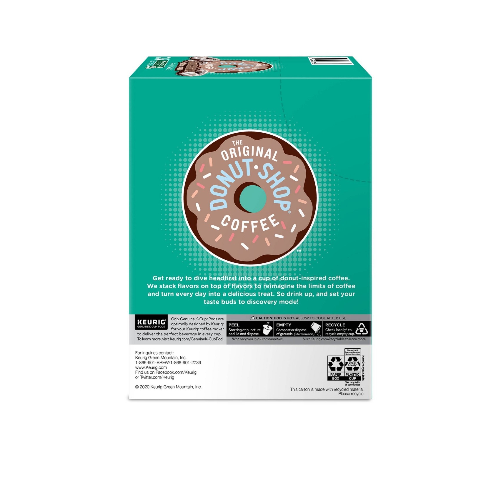 u0026bull;BRAND STORY: Get ready to dive headfirst into a cup of donut-inspired coffee. We stack flavors on top of flavors to reimagine the limits of coffee and turn every day into a delicious treat. So drink up, and set your taste buds to discovery mode!u003cbru003eu0026bull;TASTE: Fresh-baked chocolate donut-flavored coffee in a cup.u003cbru003eu0026bull;ROAST: Medium Roast caffeinated coffee and is certified Orthodox Union Kosheru003cbru003eu0026bull;SUSTAINABILITY: Committed to 100% responsibly sourced coffeeu003cbru003eu0026bull;COMPATIBILITY: Contains genuine Keurig K-Cup® pods, engineered for guaranteed quality and compatibility with all Keurig® K-Cup® pod coffee makersu003cbru003eu0026bull;RECYCLABLE* K-CUP PODS: Simple. Delicious. And Recyclable. Enjoy the same great-tasting coffee you know and love, and when you’re done just peel, empty and recycle. *Check locally, not recycled in all communities. Packaging may vary.