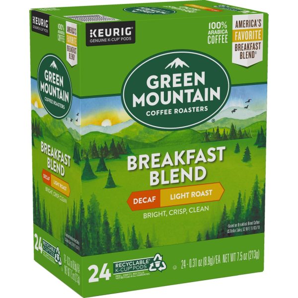 24ct Green Mountain Coffee Breakfast Blend Decaf Keurig K-Cup Coffee Pods Decaffeinated Light Roast
