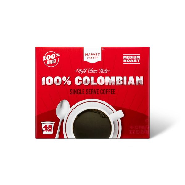 100% Colombian Medium Roast Coffee – Single Serve Pods – 48ct – Market Pantryu00268482