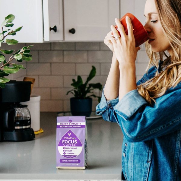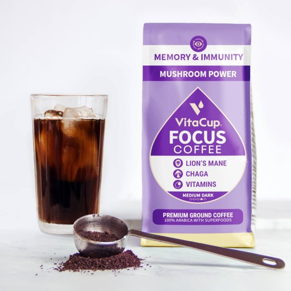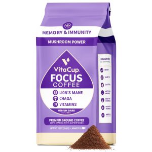 VitaCup Focus Ground Coffee Medium Roast Cognitive u002638 Immunity Support Lions Mane, Chaga Mushroom u002638 B Vitamin – 10oz