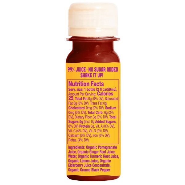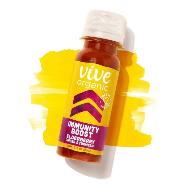 u0026bull;Immunity shots delivered fresh. A farm fresh blend of cold pressed elderberry, turmeric, and ginger with pomegranate juice. u003cbru003eu0026bull;Potent immunity booster. A kick you can feel with superfoods elderberry, turmeric, and ginger. No sugar added, no artificial ingredients or colors, no water added. u003cbru003eu0026bull;Proactive Daily Wellness. Take immunity shots at home, school, before a flight, or with your morning coffee. Give your body a daily boost. u003cbru003eu0026bull;Vive Organic wants to spark doctor crafted holistic wellness and sustainable practices. Recycled plastics, “ugly” produce to reduce food waste, and regenerative farming. u003cbru003eu0026bull;Make proactive immunity part of your daily routine. Spark your immunity with potent juice shots that pack a punch.