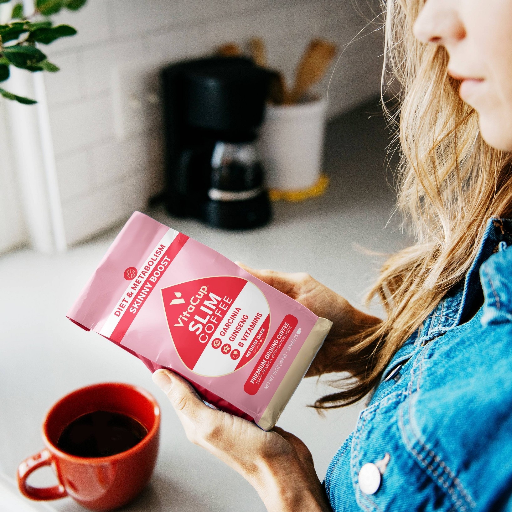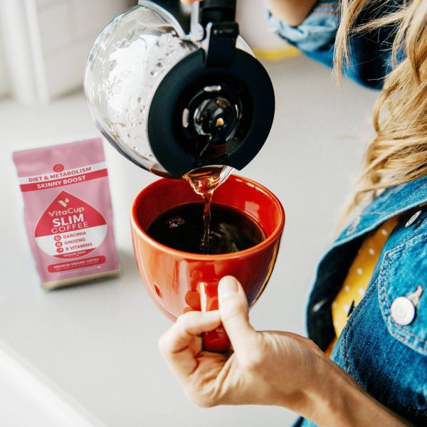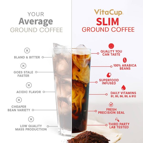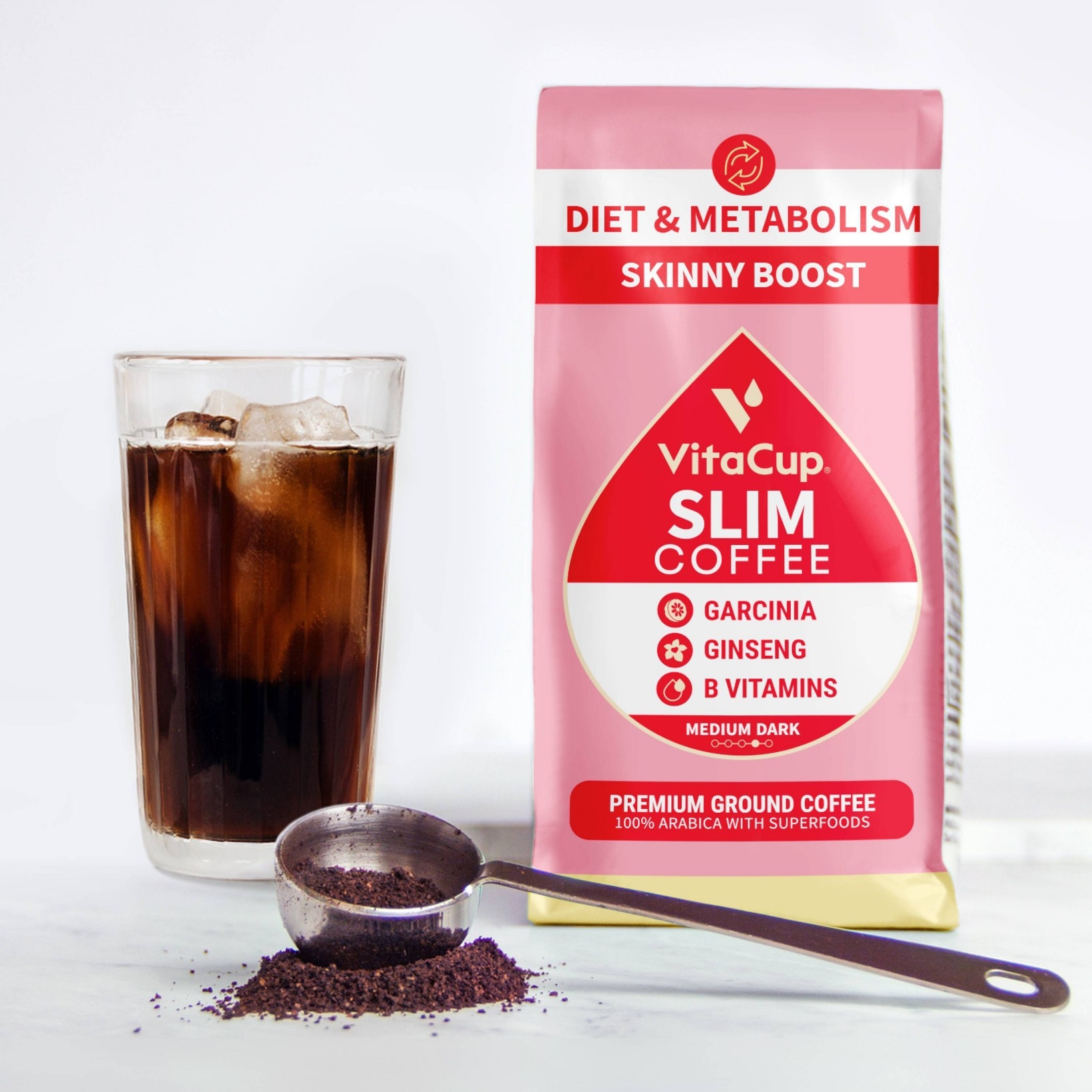 VitaCup Slim Ground Coffee (Diet u002638 Metabolism) w/ Garcinia, Ginseng, u002638 B Vitamins, Medium Roast – 10oz