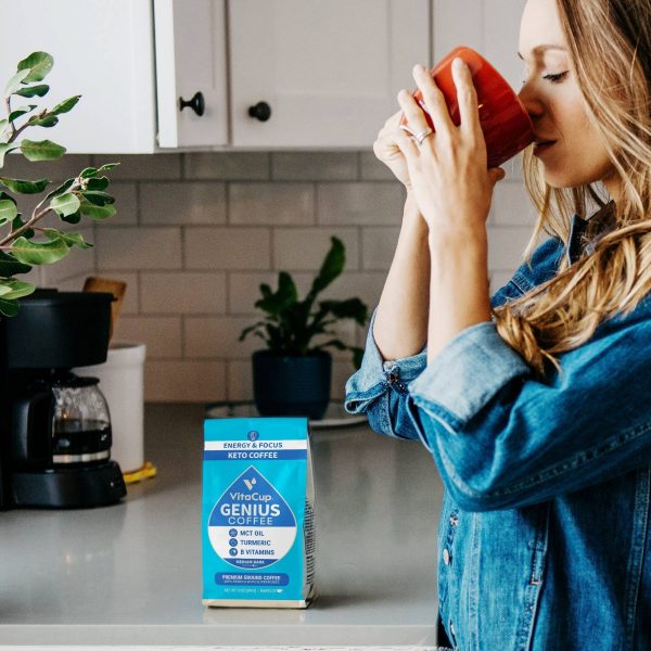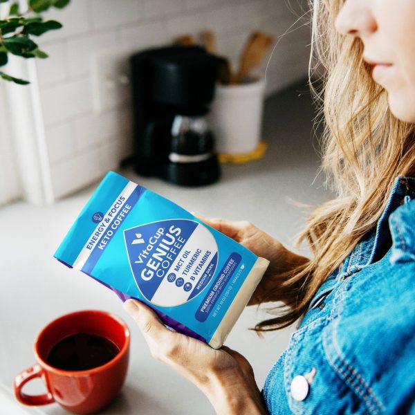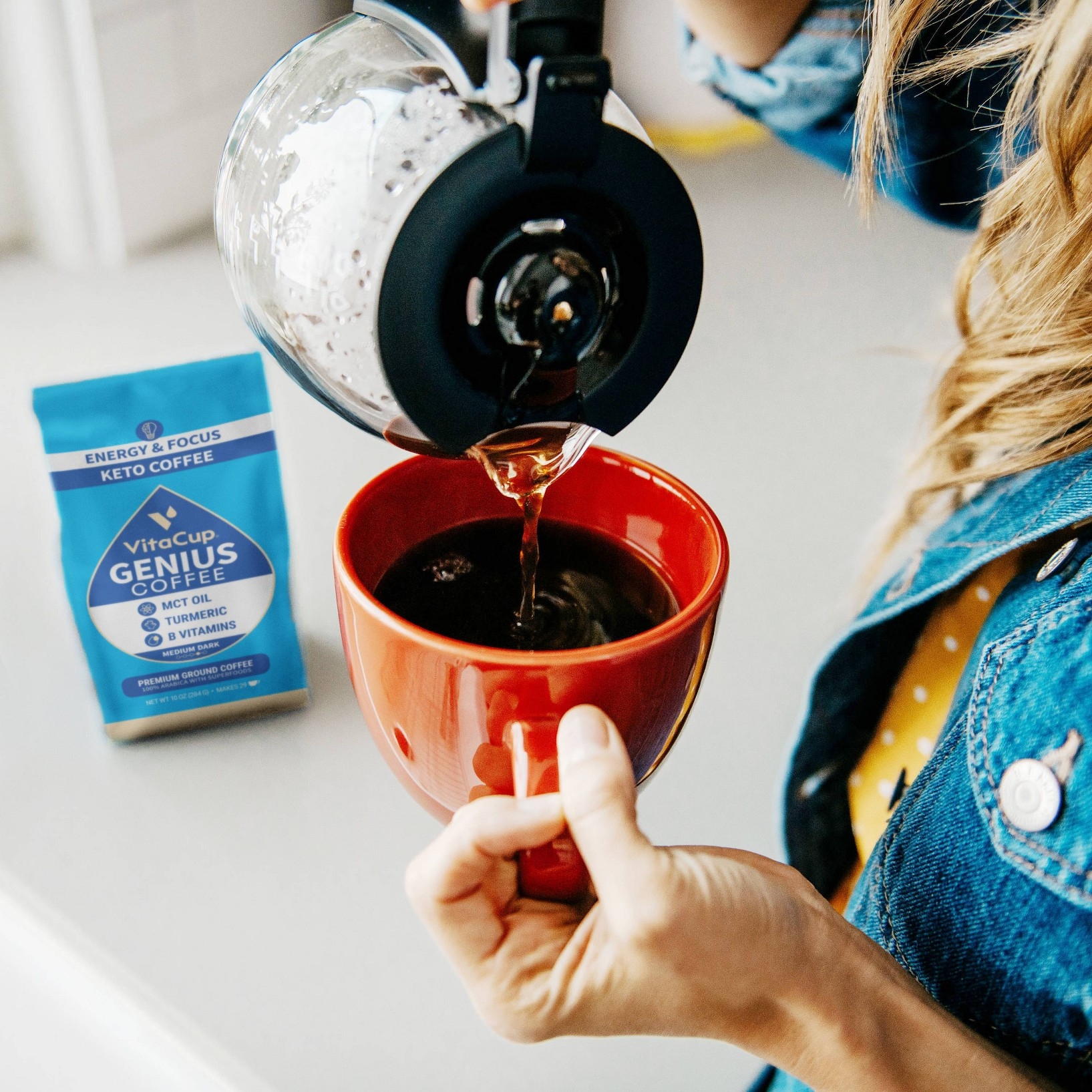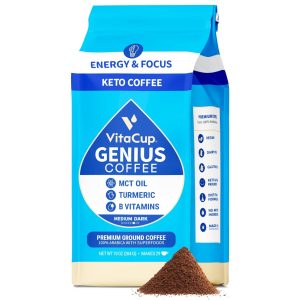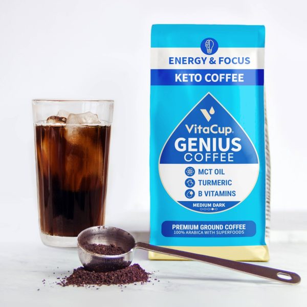 VitaCup Genius Ground Coffee w/ KETO MCT Oil, Turmeric, u002638 B Vitamins (Energy u002638 Focus) Medium Roast – 10oz