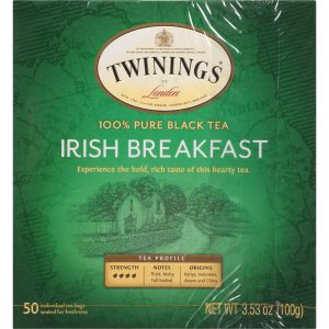 u0026bull;Experience the bold, rich taste of this hearty teau003cbru003eu0026bull;Steep for 4 minutes for the perfect cup of Irish Breakfast black teau003cbru003eu0026bull;Fine black tea expertly selected from Kenya, Indonesia, Assam and Chinau003cbru003eu0026bull;50 individually sealed tea bags for freshness
