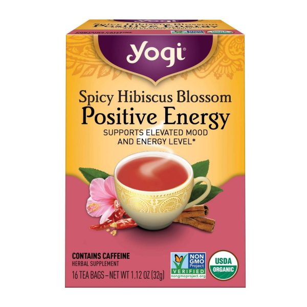 u0026bull;FLAVOR: Yogi Spicy Hibiscus Blossom Positive Energy tea combines bold Assam Black Tea with Hibiscus Flower and Cayenne Pepper for a tart-sweet tea with a kick of spicy flavor.u003cbru003eu0026bull;BENEFITS: This uplifting tea combines invigorating Organic Guayusa Leaf with bold Assam Black Tea and Green Tea Leaf Extract to help energize your body and mind during the day.u003cbru003eu0026bull;ORGANIC: USDA Certified Organic and Non-GMO Project Verified.u003cbru003eu0026bull;CONTENTS: Contains caffeine, Vegan, Kosher, Gluten-free, No Artificial Flavors or Sweeteners, and individually packaged with compostable bags.