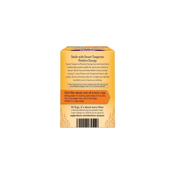 u0026bull;SUPPORTS ELEVATED MOOD AND ENERGY LEVELS*u003cbru003eu0026bull;FLAVOR: Yogi Sweet Tangerine Positive Energy tea combines bold Assam Black Tea with Organic Tangerine and Lotus Flower Flavors for a delightfully sweet and citrusy blend.u003cbru003eu0026bull;BENEFITS: This invigorating tea combines Yerba Maté Leaf with herbs traditionally used to help support elevated energy levels and an uplifted mood.u003cbru003eu0026bull;ORGANIC: USDA Certified Organic and Non-GMO Project Verified.u003cbru003eu0026bull;CONTENTS: Contains caffeine, Vegan, Kosher, Gluten-free, No Artificial Flavors or Sweeteners, and individually packaged with compostable bags.