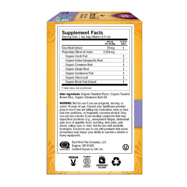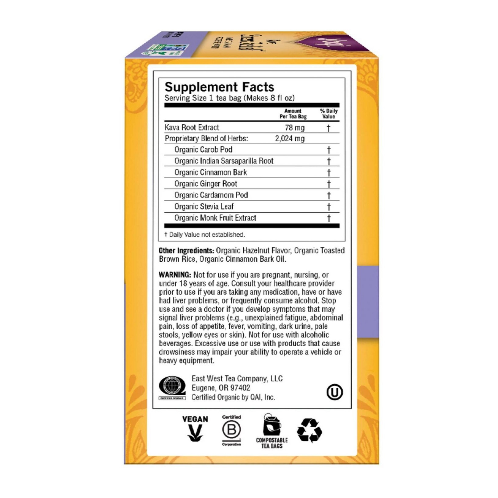 u0026bull;EASES TENSION AND PROMOTES RELAXATION*u003cbru003eu0026bull;FLAVOR: Yogi Kava Stress Relief tea is a naturally spicy-sweet and warming blend of Kava, Cinnamon, Indian Sarsaparilla Root, and Carob Pod.u003cbru003eu0026bull;BENEFITS: Kava, traditionally used for its power to calm the body and mind; combines with warming spices to help support relaxation and tranquility.u003cbru003eu0026bull;ORGANIC: Made with Organic Carob Pod and Non-GMO Project Verifiedu003cbru003eu0026bull;CONTENTS: Caffeine-free, Vegan, Kosher, Gluten-free, No Artificial Flavors or Sweeteners, and individually packaged in compostable tea bags.