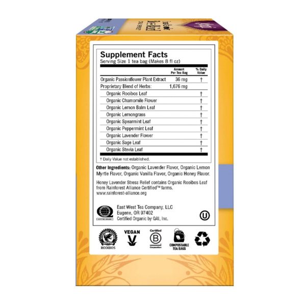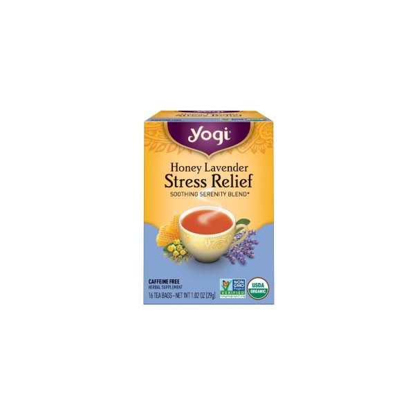 u0026bull;SOOTHING SERENITY BLEND*u003cbru003eu0026bull;FLAVOR: Yogi Honey Lavender Stress Relief tea combines Lavender, Chamomile, and Lemon Balm with Organic Honey Flavor for a floral and lightly citrusy sweet blend.u003cbru003eu0026bull;BENEFITS: This soothing blend includes Lavender, Chamomile, and Lemon Balm; herbs traditionally used to support relaxation.u003cbru003eu0026bull;ORGANIC: USDA Certified Organic and Non-GMO Project Verified.u003cbru003eu0026bull;CONTENTS: Caffeine-free, Vegan, Kosher, Gluten-free, No Artificial Flavors or Sweeteners, and individually packaged in compostable tea bags.