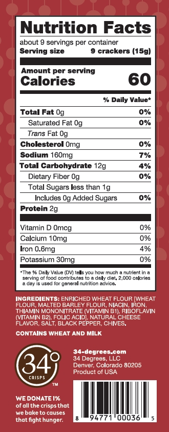34 Degrees is the maker of deliciously thin, light and crunchy crisps for all occasions. Our Entertaining Crisps complement any pairing and any flavor, from mild meats and cheeses to spicy spreads to just about anything in between. Made with only a handful of quality ingredients, it’s the crisp you can’t resist!
