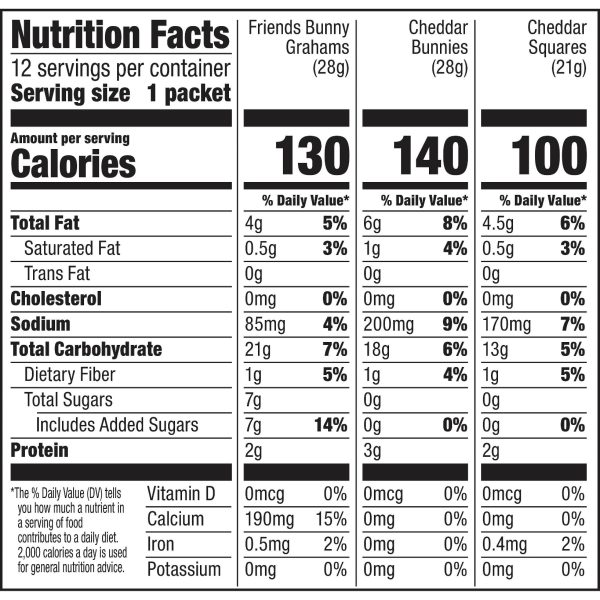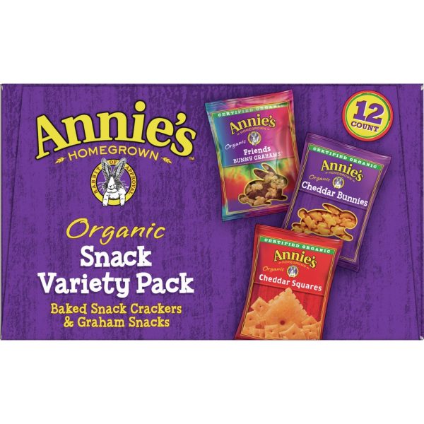 u0026bull;QUICK u0026 CONVENIENT SNACK: Includes from 3 snackable, delicious, and non-GMO options: Cheddar Bunnies, Bunny Grahams, Cheddar Squaresu003cbru003eu0026bull;MADE WITH GOODNESS: Annie’s original Snack Pack contains no artificial flavors, synthetic colors or preservatives.u003cbru003eu0026bull;REAL INGREDIENTS: Baked with real organic cheese and organic wheat flour; A Snack Pack that’s tasty AND Wholesomeu003cbru003eu0026bull;CERTIFIED ORGANIC: Made with real organic ingredients that matter to you, to farmers, and to the planet. Certified organic ingredients are grown without persistent pesticides.u003cbru003eu0026bull;CONTAINS: 4 Cheddar Bunnies, 4 Friends Bunny Grahams, 4 Cheddar Squaresu003cbru003eu0026bull;BOX TOPS FOR EDUCATION: Proud to support schools and teachers as an official participating product