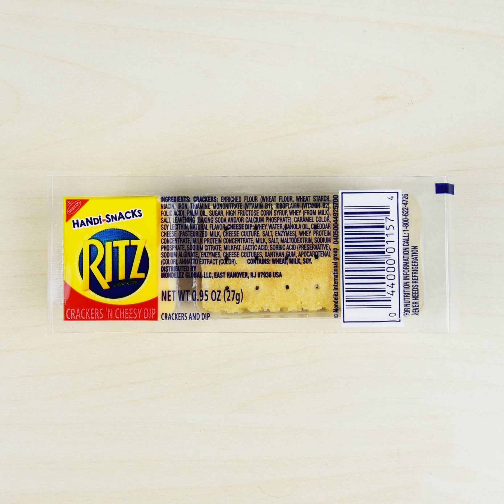 u0026bull;One box with 12 packs of Handi-Snacks RITZ Crackers and Cheese Dip Snack Packs (packaging may vary)u003cbru003eu0026bull;The same, buttery RITZ flavor in a handy to-go packu003cbru003eu0026bull;RITZ snack crackers are perfectly dippable in this cheesy dipu003cbru003eu0026bull;Quick cracker snack pack to toss in backpacks, travel packs and pursesu003cbru003eu0026bull;Take anywhere snack is individually wrapped for convenience