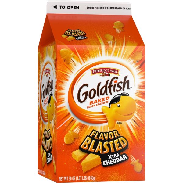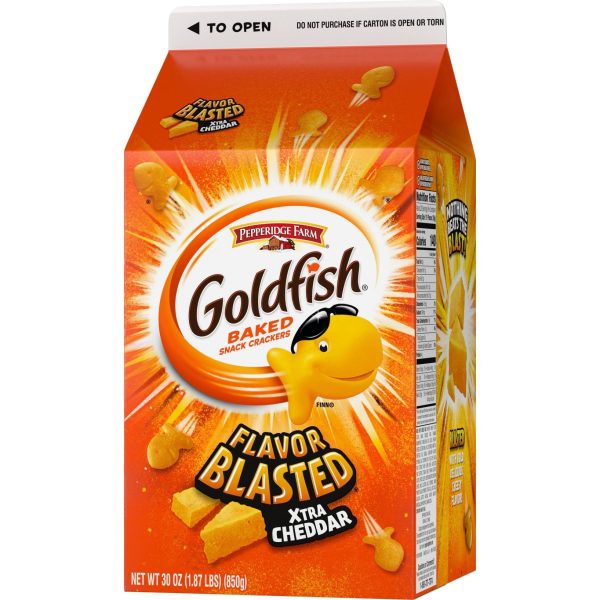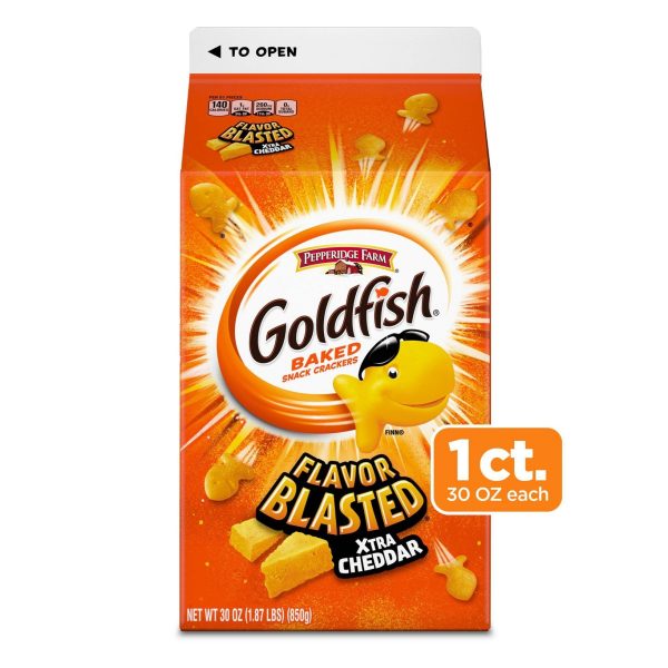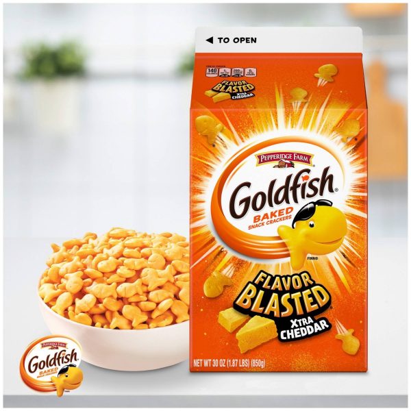 u0026bull;NOTHING BEATS THE BLAST! The whole family will love the extra cheesy flavor in every crackeru003cbru003eu0026bull;BAKED WITH REAL CHEESE: Always baked with real cheese and no artificial flavors or preservativesu003cbru003eu0026bull;BOLD SNACK: Enjoy as a side with lunch, sprinkled on soup or salad, or on its own as a flavor-packed snacku003cbru003eu0026bull;THE SNACK THAT SMILES BACK®: Goldfish crackers have been making families smile for decadesu003cbru003eu0026bull;STOCK UP ON GOLDFISH CRACKERS: Large 30 ounce carton with easy-pour spout is the perfect size for feeding your family