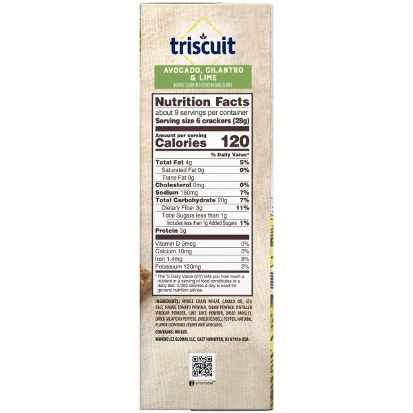 u0026bull;This package contains one 8.5 oz box of TRISCUIT Avocado, Cilantro u0026 Lime Crackers.u003cbru003eu0026bull;Snacking well is deliciously uncomplicated with TRISCUIT, a thoughtfully woven, 100% whole grain wheat cracker that starts with 3 simple, authentic ingredients: whole grain wheat, oil, and salt.u003cbru003eu0026bull;Kosher and Non-GMO Project Verified, TRISCUIT Avocado, Cilantro u0026 Lime Flavor Crackers are a good source of dietary fiber with only 4 grams of fat per serving.u003cbru003eu0026bull;Avocado, Cilantro u0026 Lime TRISCUITs are crafted from whole grain wheat that’s been sourced from sustainable family farms in northern Michigan for over 100 years.u003cbru003eu0026bull;These baked crackers make for a wholesome and convenient snack on their own. When paired with dip or topped with kitchen staples like cheese, meat, or veggies, they become standout appetizers.