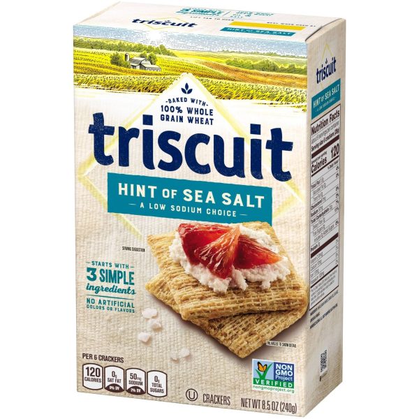 u0026bull;One 8.5 oz box of Triscuit Hint of Sea Salt Whole Wheat Crackersu003cbru003eu0026bull;Whole grain wheat with a hint of sea saltu003cbru003eu0026bull;Thick square crackers offer a wholesome snacking optionu003cbru003eu0026bull;Baked crackers feature an intricate woven textureu003cbru003eu0026bull;Serve as cheese and crackers or top with other favorites