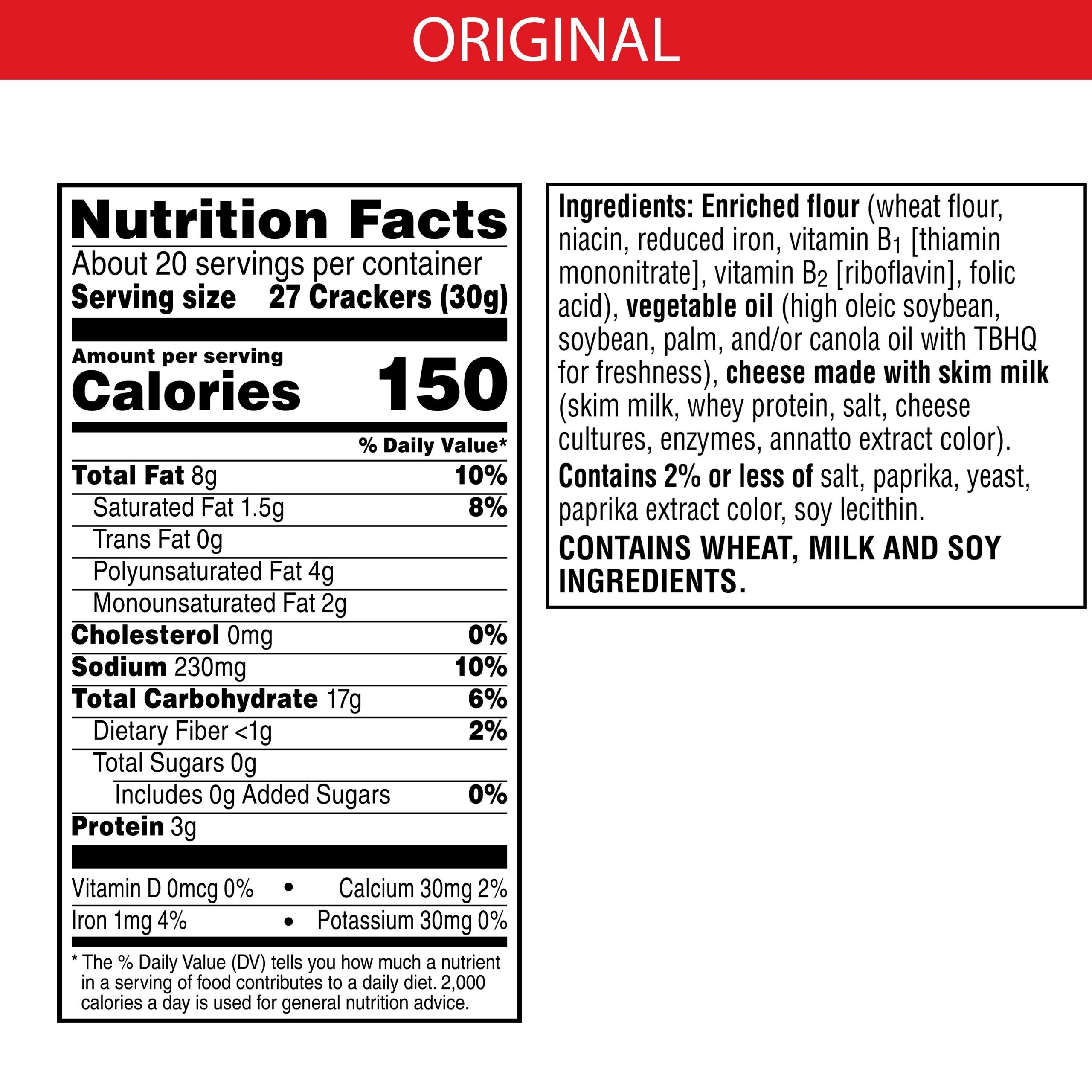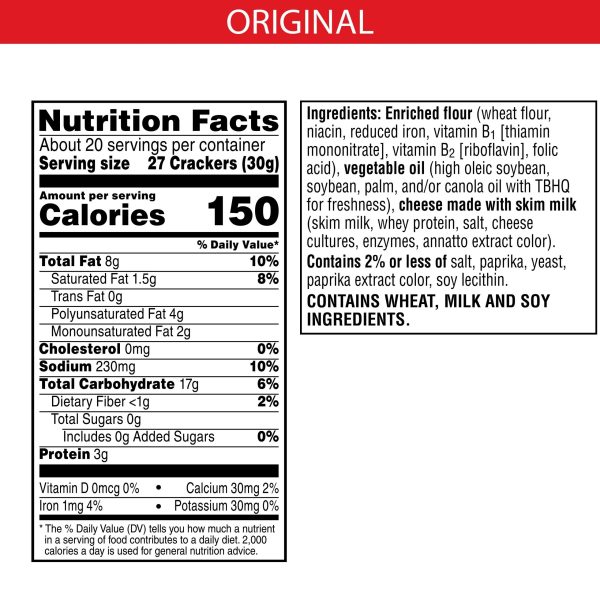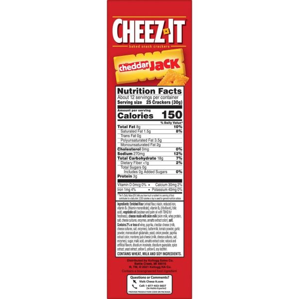Make snack time more fun with Cheez-It Original Baked Snack Crackers, bite-size cheese crackers that are baked to crispy perfection. Cheez-It Baked Snack Crackers are the real deal – made with 100% real cheese that’s been carefully aged for a yummy, irresistible taste that’s bursting with real cheese goodness in every crunchy bite. Each perfect square crisp is loaded with bold cheesy flavor that hits your taste buds with every delicious mouthful. A baked snack, Cheez-It crackers are perfect for game time, party spreads, school lunches, late-night snacking and more – the cheesy options are endless. Go ahead and enjoy your favorite cheese bite. You’ll love the one-of-a-kind flavor of real cheese in every tasty handful of Cheez-It Original Baked Snack Crackers.