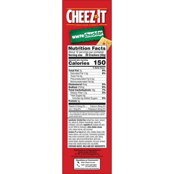 u0026bull;Light and crispy bite-sized snack crackers made with real cheese and 25% less fat than Cheez-It Original crackers*u003cbru003eu0026bull;Our cheesy baked crackers are packed for convenience and make a delicious anytime snack; A classic, family-favorite snack that’s perfect for kids and adultsu003cbru003eu0026bull;Made with 100% real cheese aged for a bold taste; Kosher Dairy; Contains wheat, milk and soy ingredientsu003cbru003eu0026bull;A travel-ready food; Makes a tasty bite at home or on the go; Ideal for gatherings, parties, snack spreads, and more; Stow in lunchboxes, totes, and backpacksu003cbru003eu0026bull;Includes 1, 19-ounce family-sized box of ready-to-eat snack crackers; Packaged for freshness and great taste