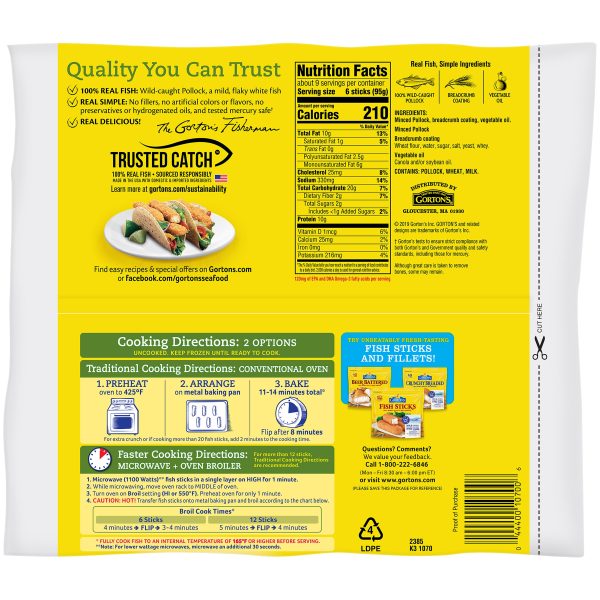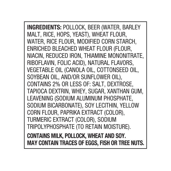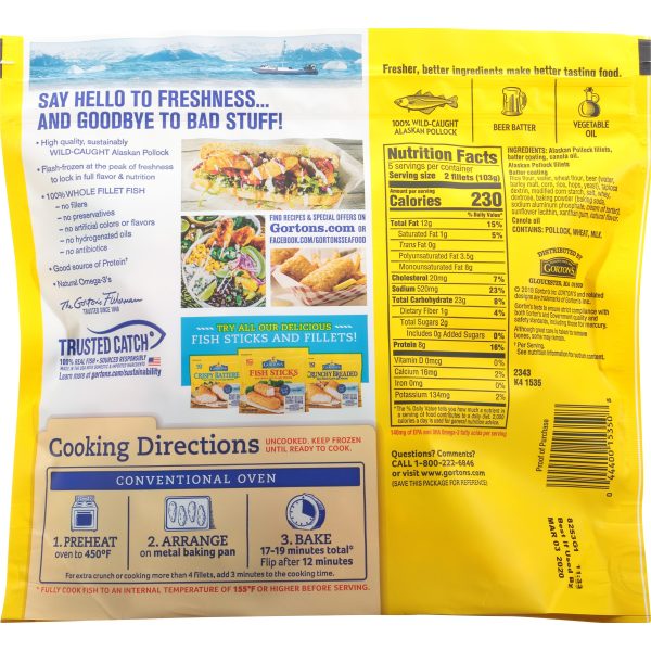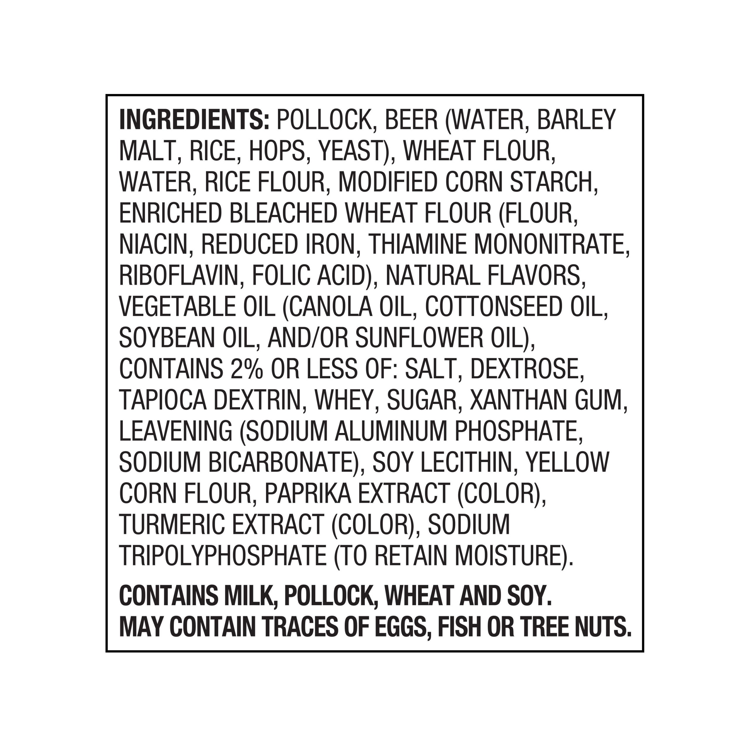 Prep-free, mess-free, stress-free. For a hearty, pub style taste of seafood, there?s no beating Gorton’s Beer Battered Fish Fillets: flaky, 100% real white fish coated in a crispy draft beer batter. The resealable bag locks in freshness so you can enjoy some now, and the rest later.