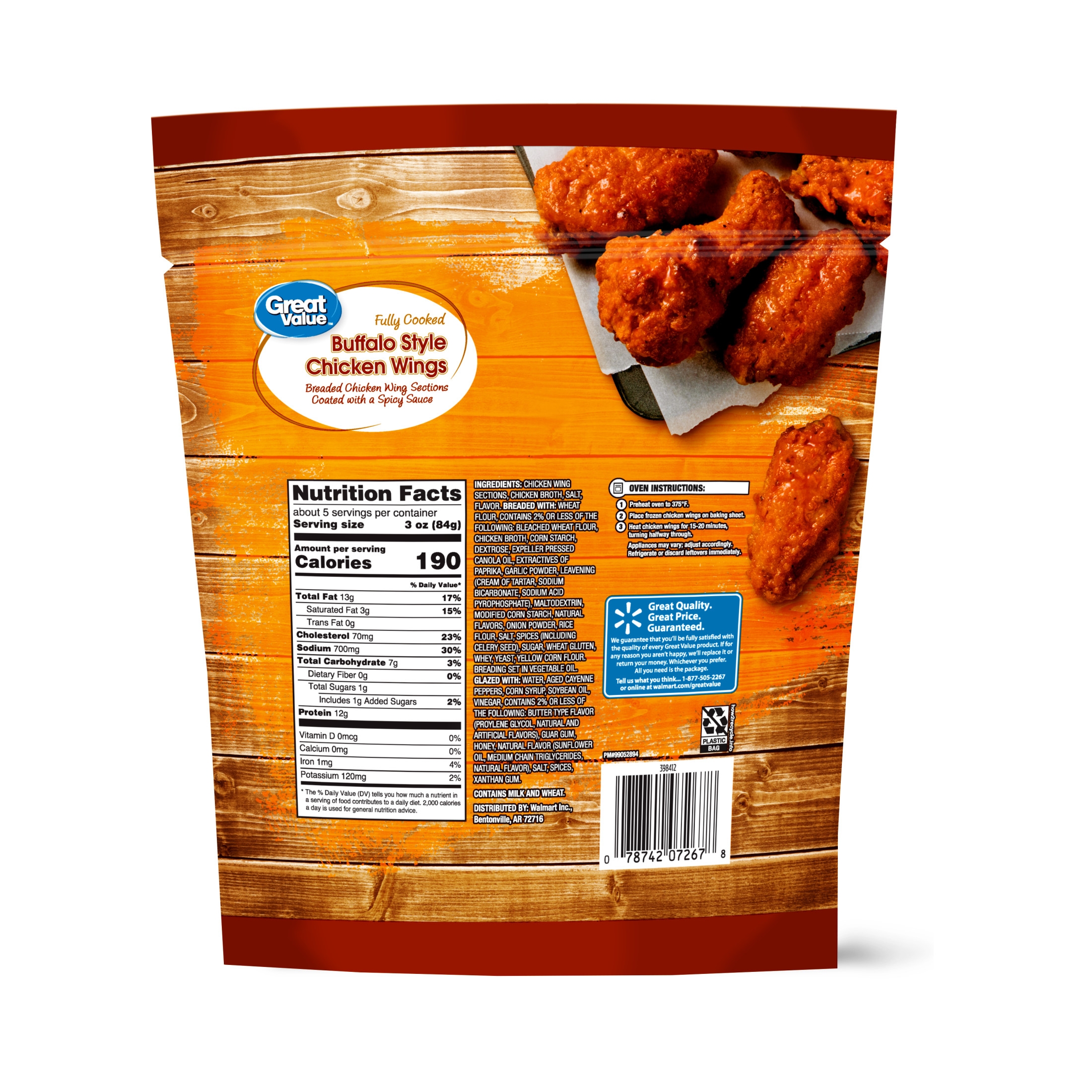 Great Value Buffalo Style Fully Cooked Chicken Wings, 22 oz