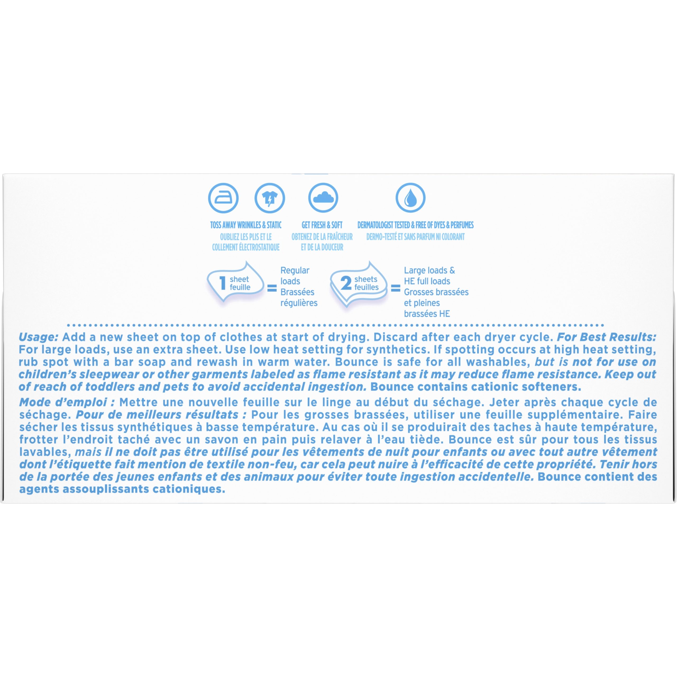 Our Bounce Fabric Softener Dryer Sheets with that Fresh Linen scent really do have a lot in common with linen (the fabric) – both are cool, crisp and light. But Bounce might just have something that real linen could use – the power to fight static, reduce wrinkles, repel lint and hair while keeping your fabrics soft. Take that linen.