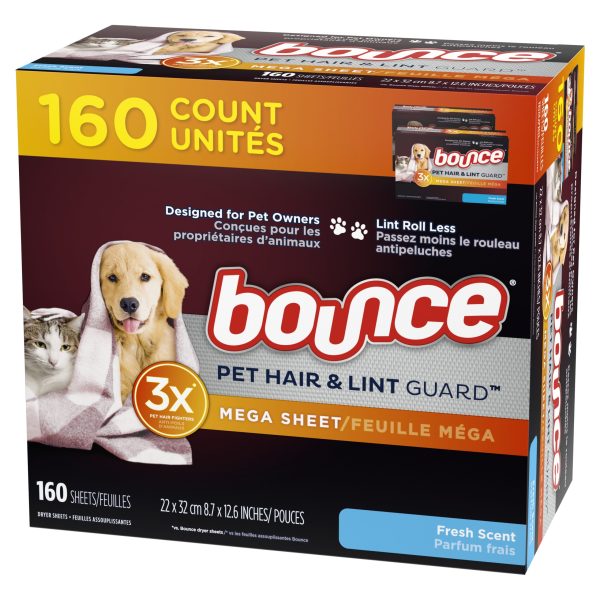 Bounce Pet Hair and Lint Guard Mega Dryer Sheets, Fresh Scent, 160 Ct