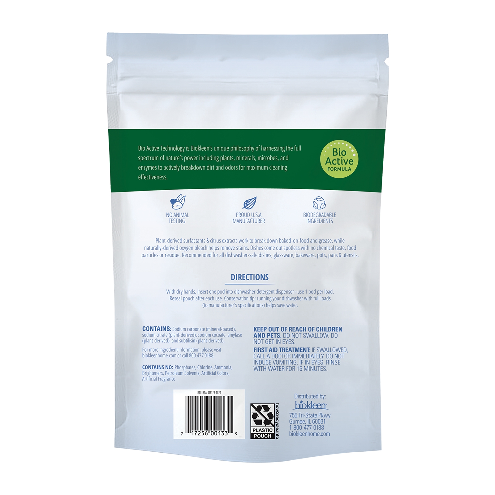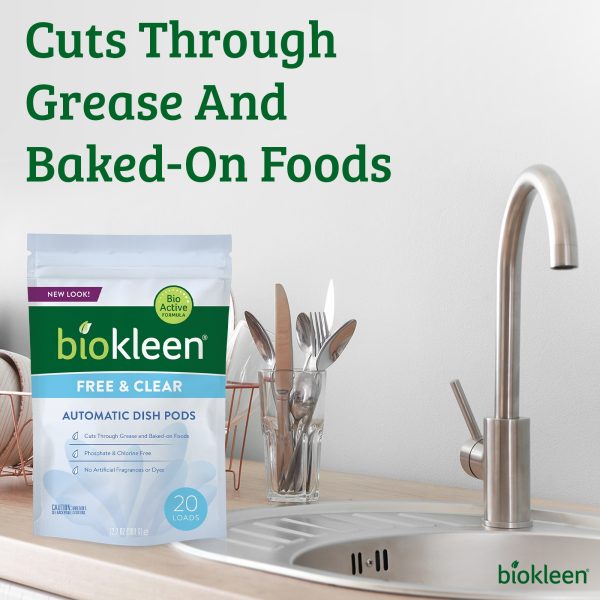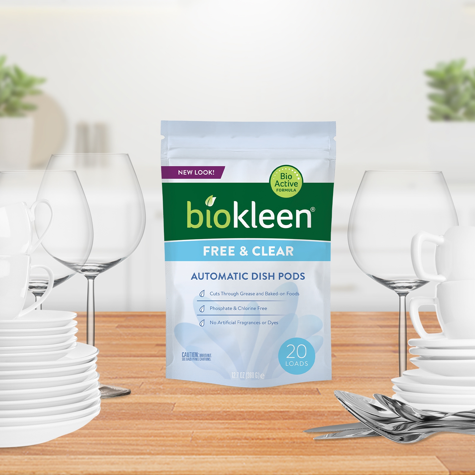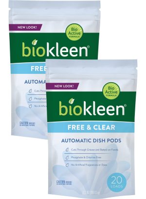 For a sink full of dirty dishes, it’s Biokleen to the rescue. Our Free and Clear Automatic Dish Pods cut through the toughest grease and burnt-on foods. We never use phosphates, chlorine, ammonia, brighteners, or artificial colors and fragrance to make this product, leaving you with a family-safe detergent to take care of all your dishes. Biokleen products are highly concentrated to reduce packaging, waste, and energy use. Proudly manufactured in the U.S. and made with a commitment to people, pets and our planet, this pack of Automatic Pods makes it easier than ever to keep all your dishes sparkling clean.