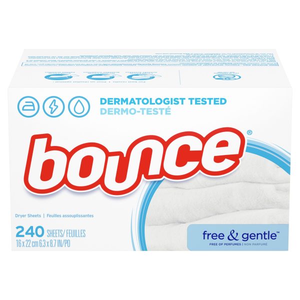 Bounce Free & Gentle Fabric Softener Dryer Sheets, Unscented, 240 ct