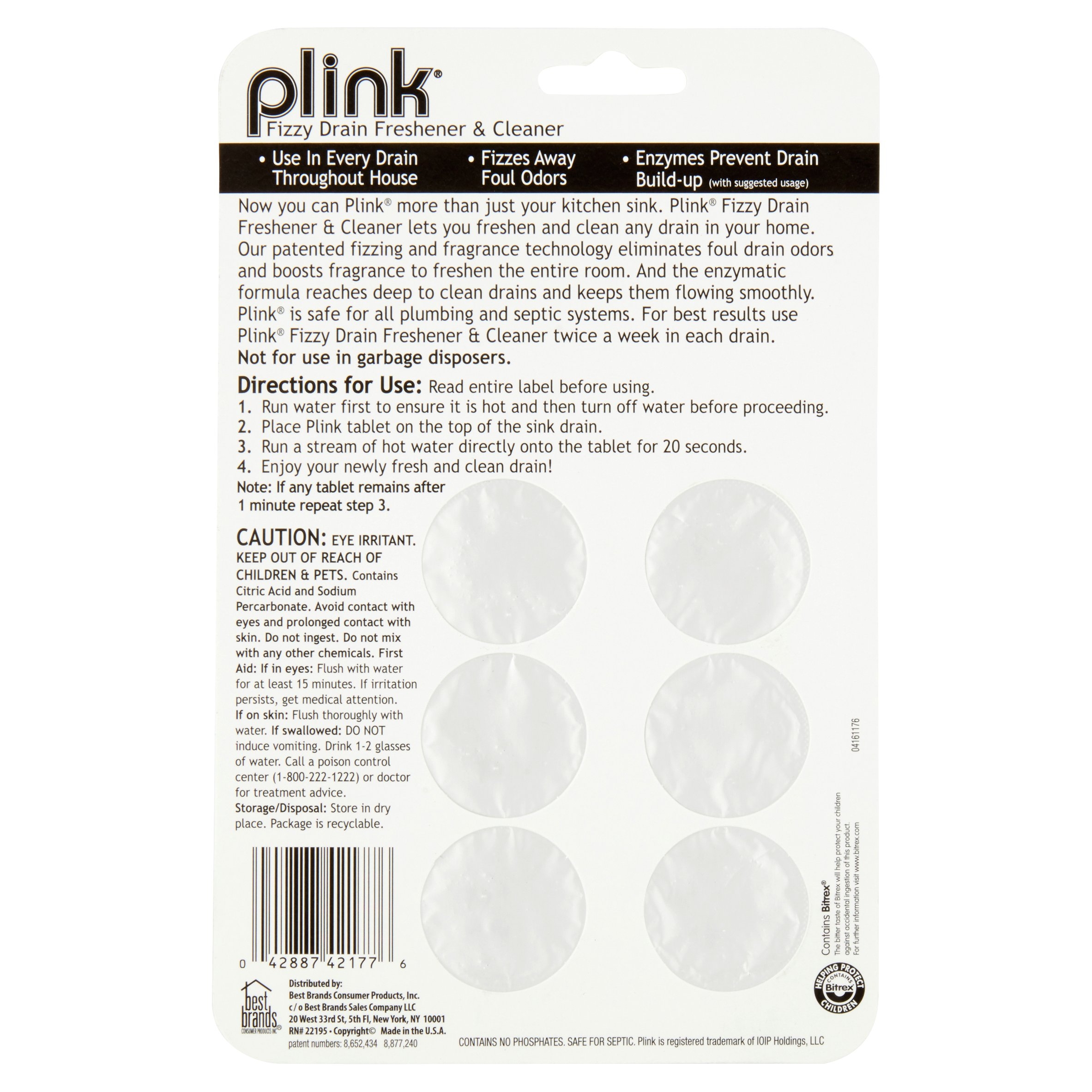 Get rid of foul odors with the Best Brands Plink Drain Freshener and Cleaner. It leaves your space with a clean, lemon scent. This lemon cleaner comes with six tabs per pack. To use, place one tablet on the sink drain and dissolve with hot water.