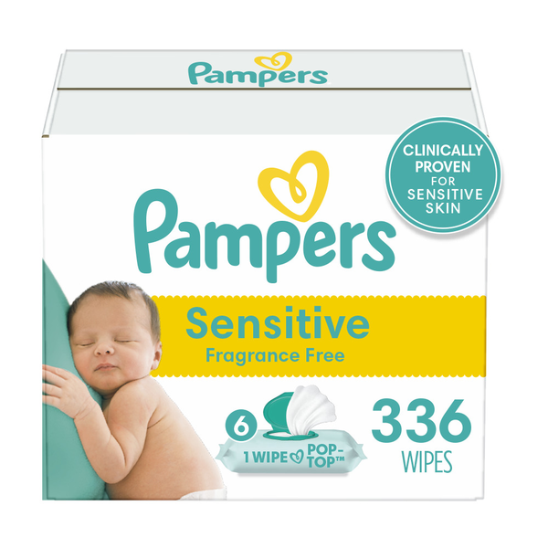 Pampers Baby Wipes Sensitive Perfume Free 6X Pop-Top Packs