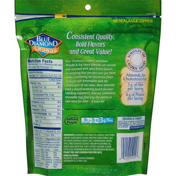 ?Contains 1 – 16 ounce bag of Blue Diamond Wasabi & Soy Sauce