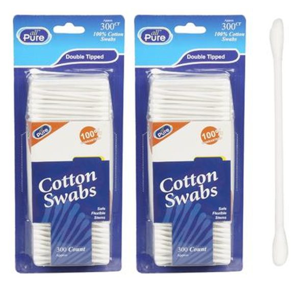 All Pure 1100 piece Cotton Swab Pack features double-tipped swabs with 100% cotton ends.