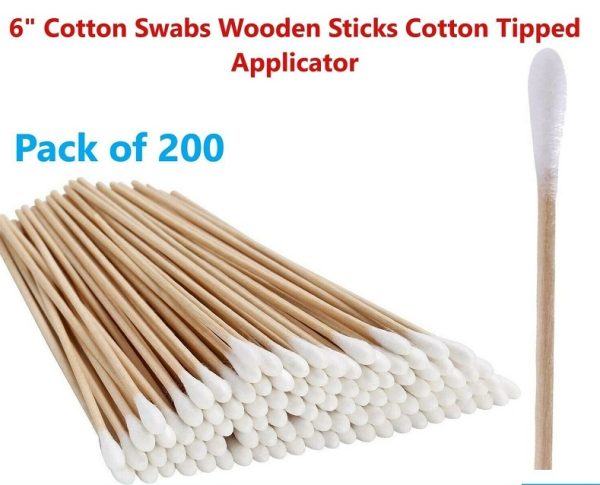 200pc Cotton Swabs Swab Q-tips 6″ Long Wood Wooden Handle Cleaning Applicators