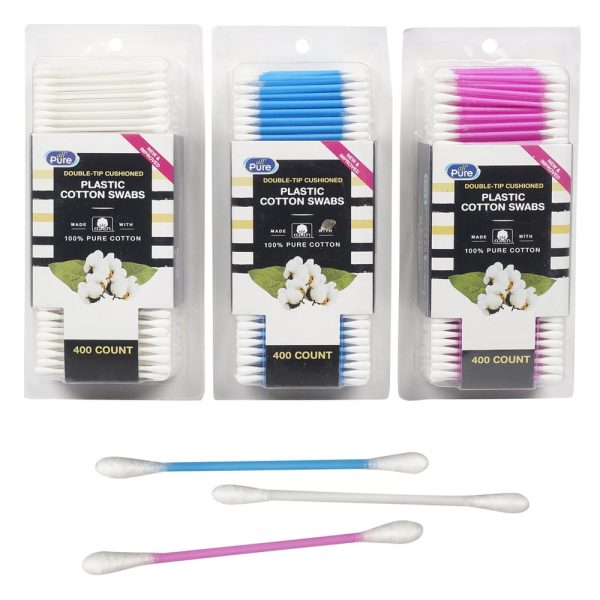 All Pure 400 ct Cotton Swab on plastic stick features double-tipped 100% cotton ends.