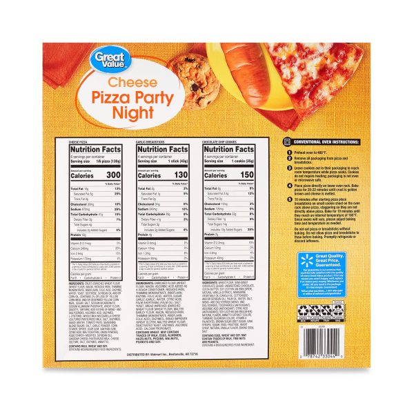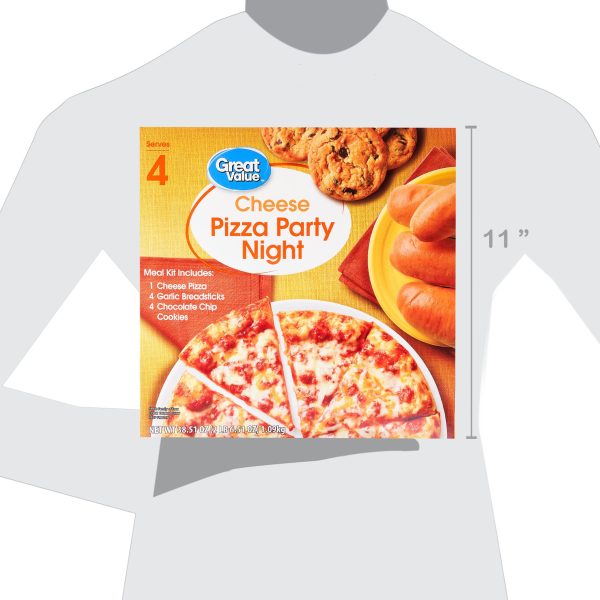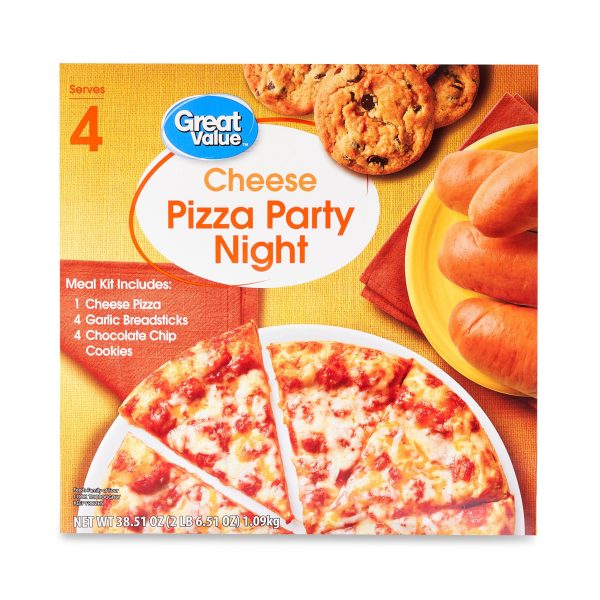 Stop hunger in its tracks with the Great Value Cheese Pizza Party Night Meal Kit! This fun meal kit includes one cheese pizza, four garlic breadsticks, and four chocolate chip cookies- perfect for a family movie night or game night at home. You may want to add a side of garlic butter or marinara sauce for dipping the delicious breadsticks and crust after you’ve devoured the rest of your slice! When you’re looking for a fun option for dinner at home, the Great Value Cheese Pizza Party Night Meal Kit is just the ticket.