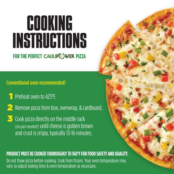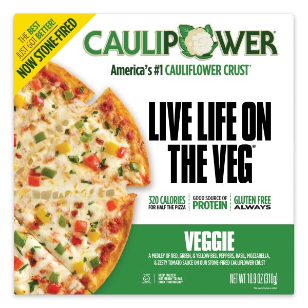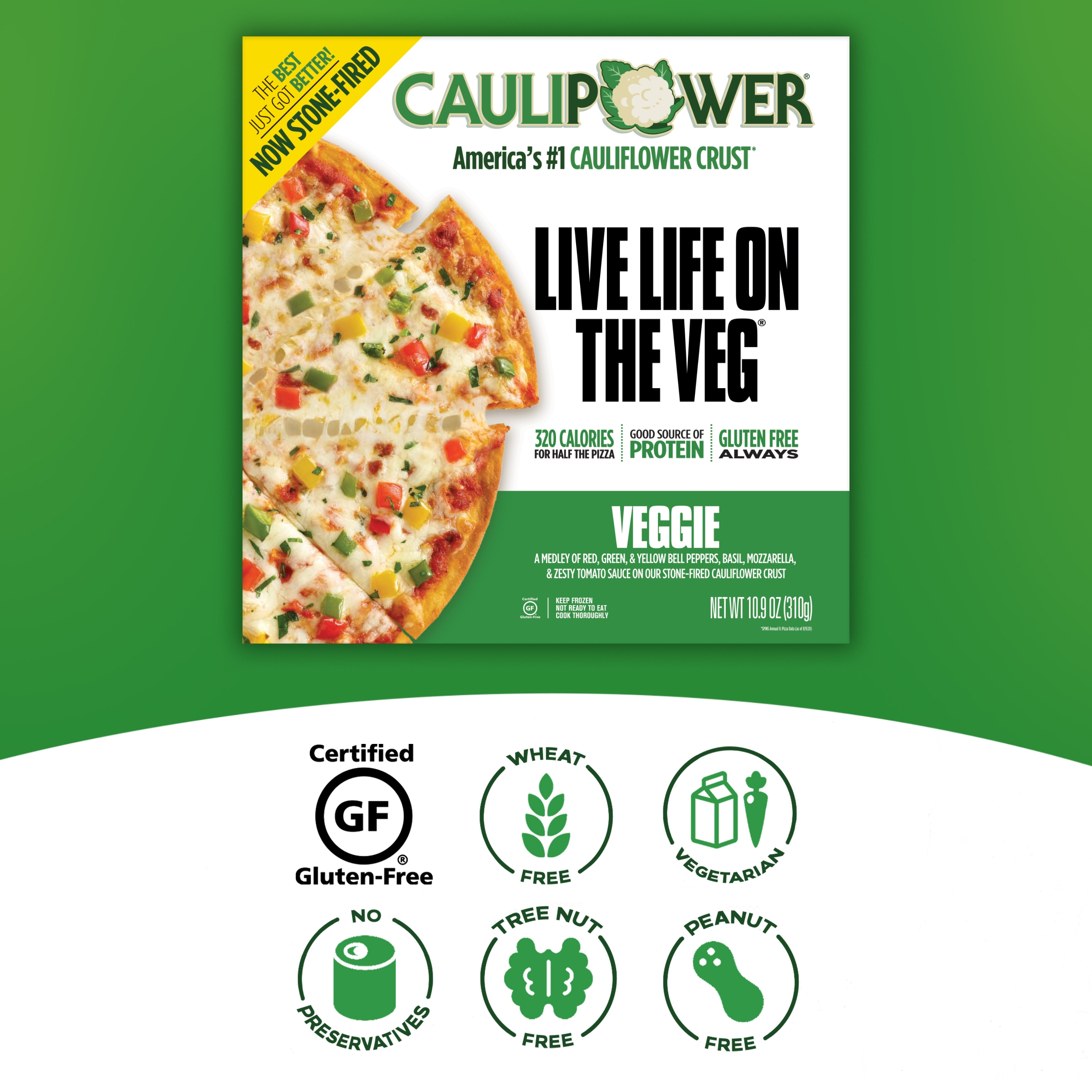CAULIPOWER? uses the power of veggies to make healthier, easier versions of the food you crave, that actually TASTE like the food you crave. The BEST just got BETTER: America’s #1 cauliflower crust pizza is NOW STONE-FIRED and crispier than ever! Our Veggie Pizza combines our delicious crust that’s made with real cauliflower with ripe green, red, and yellow peppers, melty mozzarella cheese, and a zesty tomato sauce. It’s tasty, crispy, ?WHOA! THIS IS MADE WITH CAULIFLOWER CRUST?!? pizza.