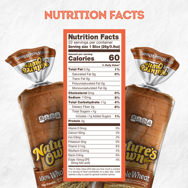 Nature’s Own 100% Whole Wheat, Whole Wheat Bread, 20 oz Loaf