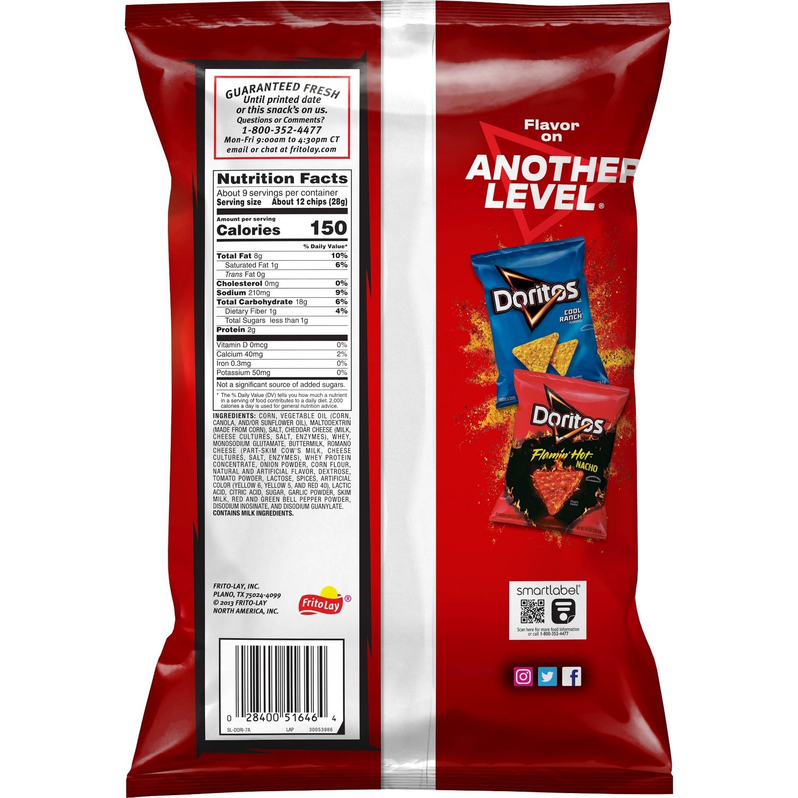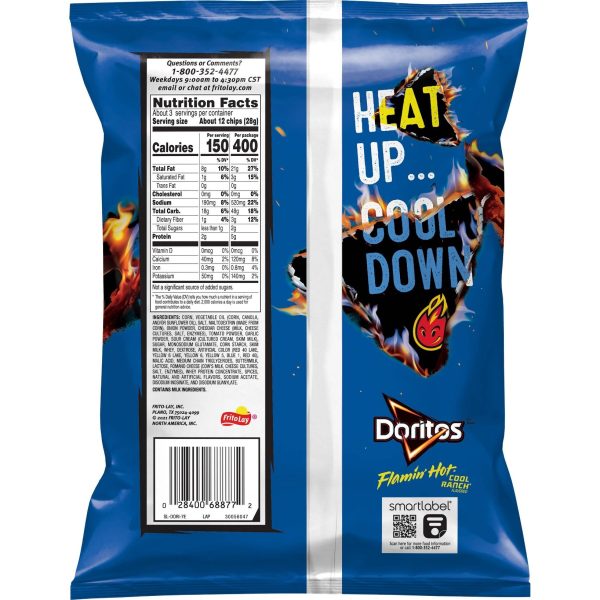 u0026bull;Includes 1 (2.75oz) bag of Doritos Tortilla Chipsu003cbru003eu0026bull;Flamin’ Hot Cool Ranch flavoru003cbru003eu0026bull;Heat up…cool downu003cbru003eu0026bull;Grab and go with this personal size bag