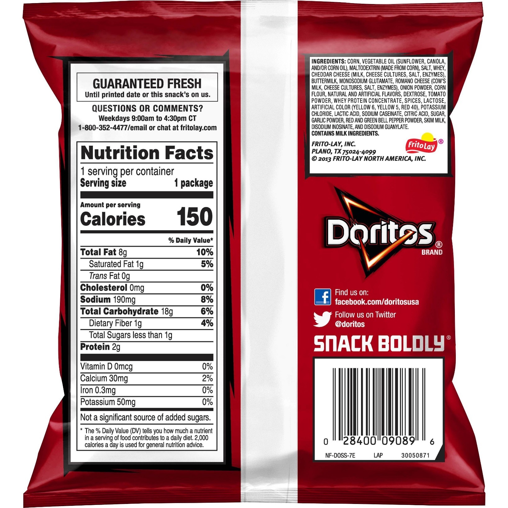 u0026bull;Bite into crunchy u0026 flavorful chips with Dorritosu003cbru003eu0026bull;Contains: Milku003cbru003eu0026bull;Exterior container: Plastic bagu003cbru003eu0026bull;Form: Chipu003cbru003eu0026bull;Serving size: 12 nachos