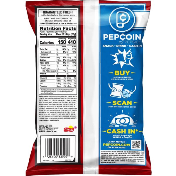u0026bull;Includes 1 (2.75oz) bag of Doritos Tortilla Chips, Nacho Cheese flavoru003cbru003eu0026bull;Bring a burst of delicious cheesy flavor to your next snack timeu003cbru003eu0026bull;Enjoy the bold snacking experience on its own or try dipping in your favorite salsa or queso dipu003cbru003eu0026bull;Shareable bag is the perfect size to bring some crunchy deliciousness to your next party or gatheringu003cbru003eu0026bull;Try packing about 11 Doritos Nacho Cheese Tortilla Chips to bring just the right amount of cheesy flavor to your next work or school lunch
