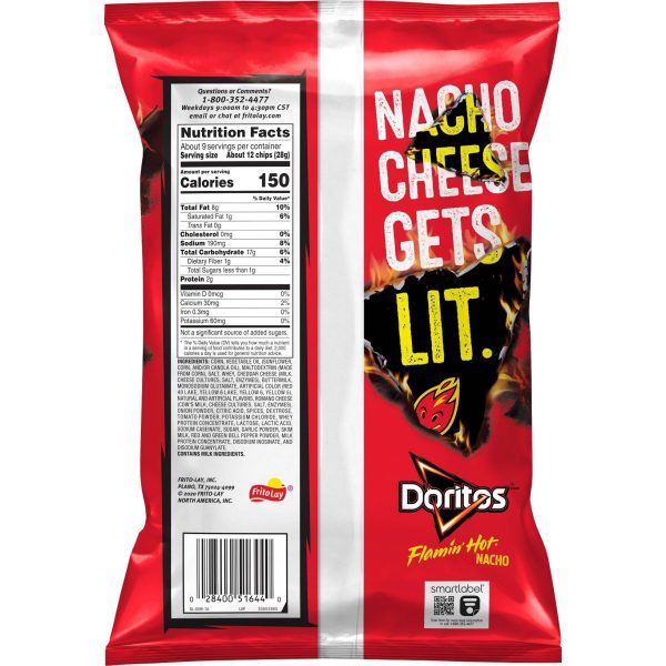 u0026bull;Includes 1 (9.75oz) bag of Doritos Tortilla Chips, Flamin’ Hot flavoru003cbru003eu0026bull;Nacho cheese gets lit with Flamin’ Hot flavoru003cbru003eu0026bull;Turn up the heat of your next snack with irresistable flamin hot flavor bursting out of every cheesy biteu003cbru003eu0026bull;Enjoy the bold snacking experience on its own or try dipping in your favorite salsa or queso dip
