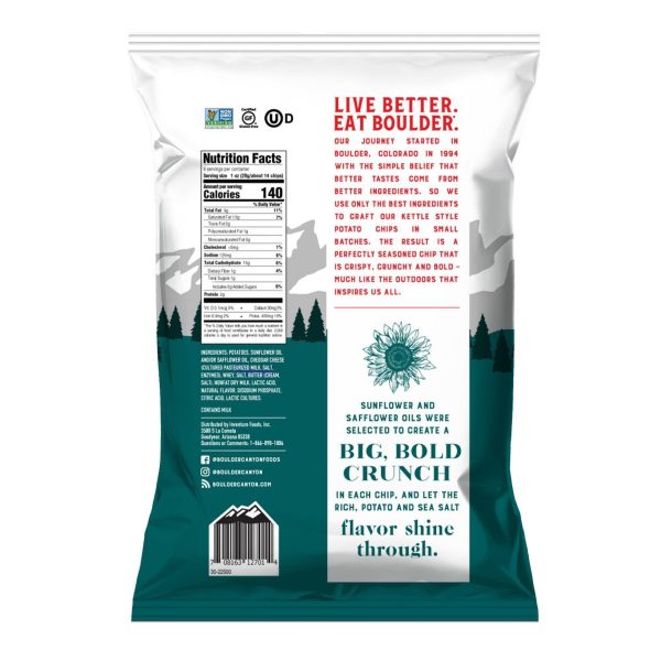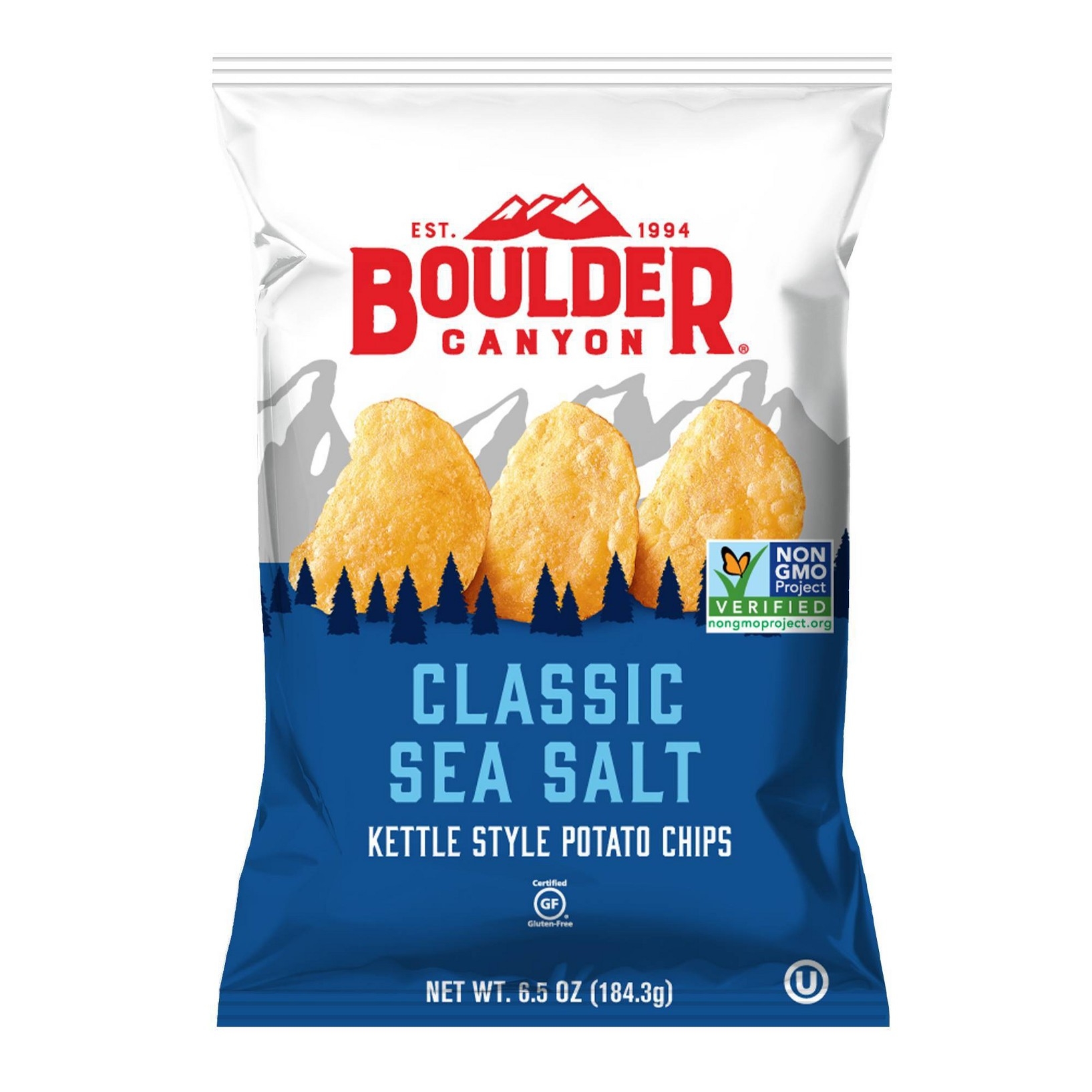 u0026bull;CRUNCHY, KETTLE COOKED – Boulder Canyon Kettle Cooked Potato Chips are thickly sliced American-grown potatoes that are slowly kettle cooked in small batches. Made with simple ingredients and shipped directly from the manufacturer to ensure freshness!u003cbru003eu0026bull;GLUTEN FREE – Enjoy these delicious, crunchy potato chips without the guilt. They are cooked in sunflower and/or safflower oil and are gluten, cholesterol and trans-fat free. These Boulder Canyon chips are also Kosher Certified.u003cbru003eu0026bull;LIVE BETTER. EAT BOULDER. Since 1994, Boulder Canyon has delivered premium snacks with real food ingredients and fewer, better and minimally processed ingredients. Packing the crunch and flavor you crave for an extraordinary snacking experience.
